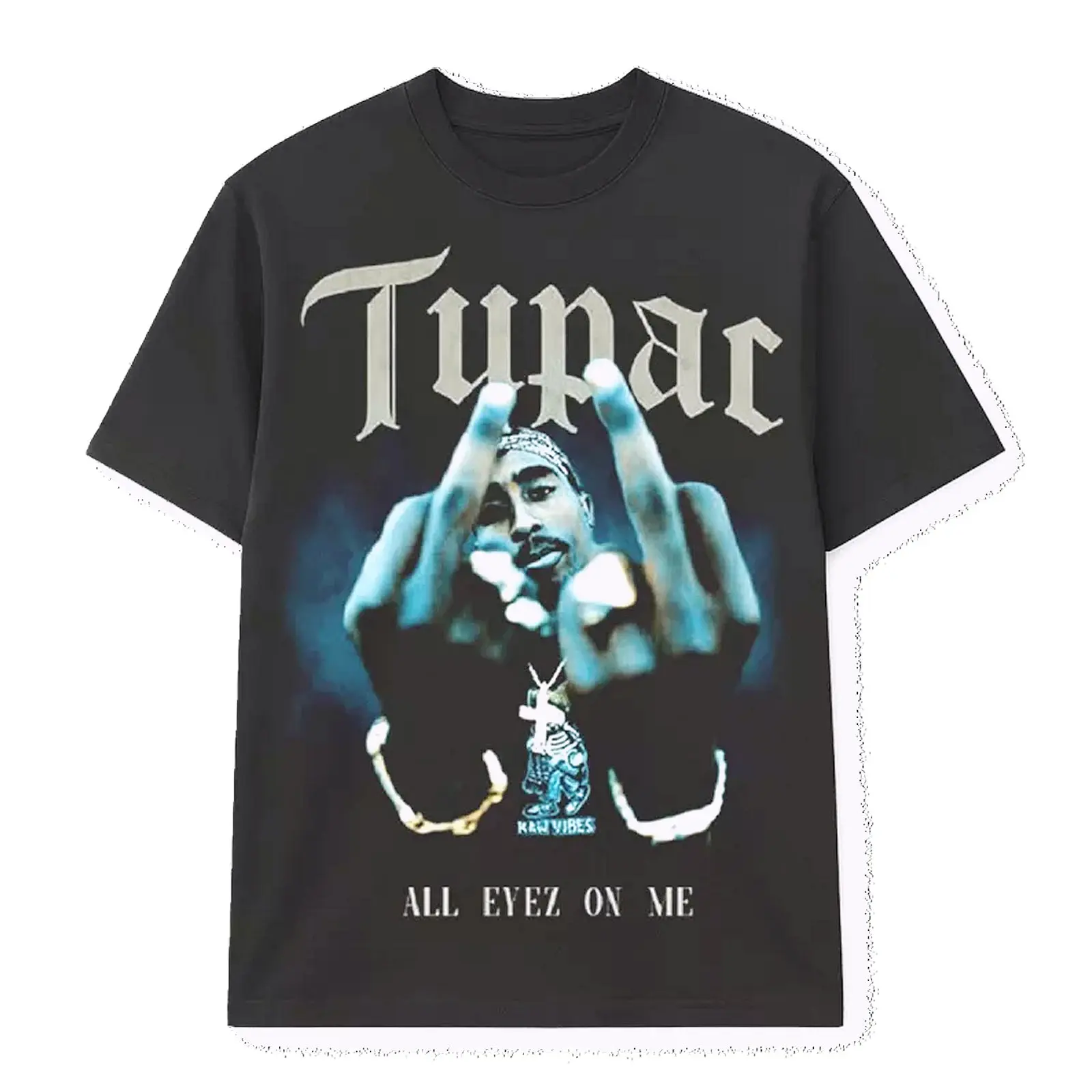 5. Tupac “All Eyez On Me” printed T-shirt Vintage Shirt Cotton Fabric Crew Neck Short Sleeve Vintage Streetwear Trendy Top - For Men For Women