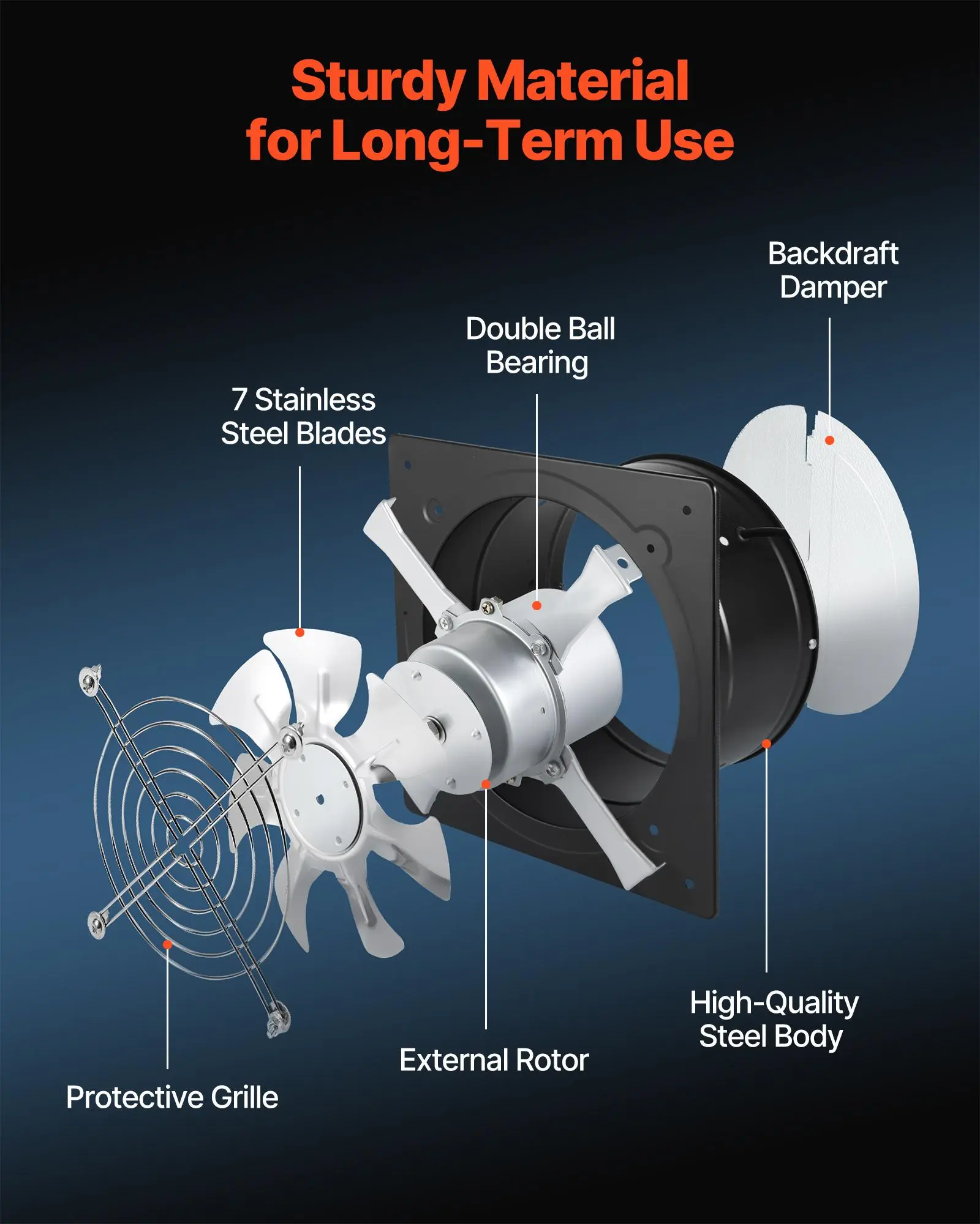 Sturdy Steel Construction: Made with a high-quality steel body for long-lasting performance, this wall mount vent fan withstands daily use in kitchens, garages, attic and other high-frequency use areas