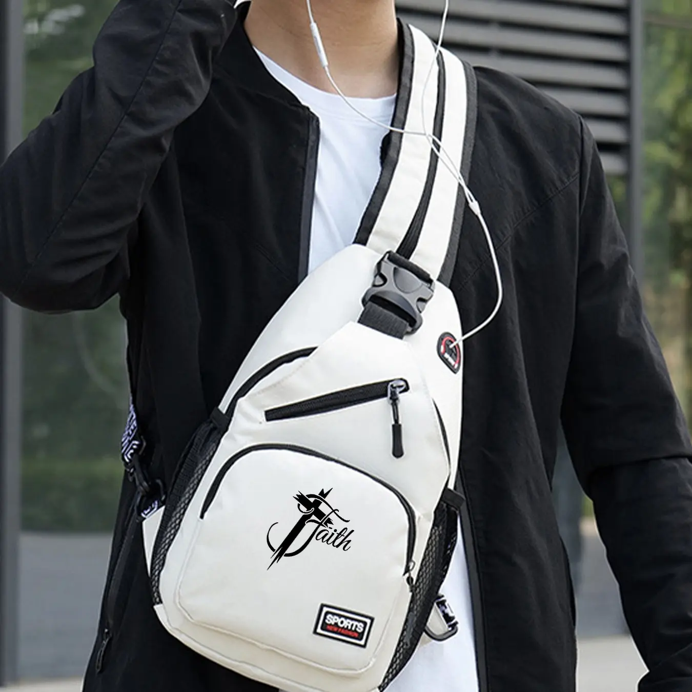 "Faith" Cross Print Sling Bag, Unisex Fashion Streetwear Chest Backpack, Unique Gift for Faith Enthusiasts, Great for Anniversary, Holiday, Daily Commute