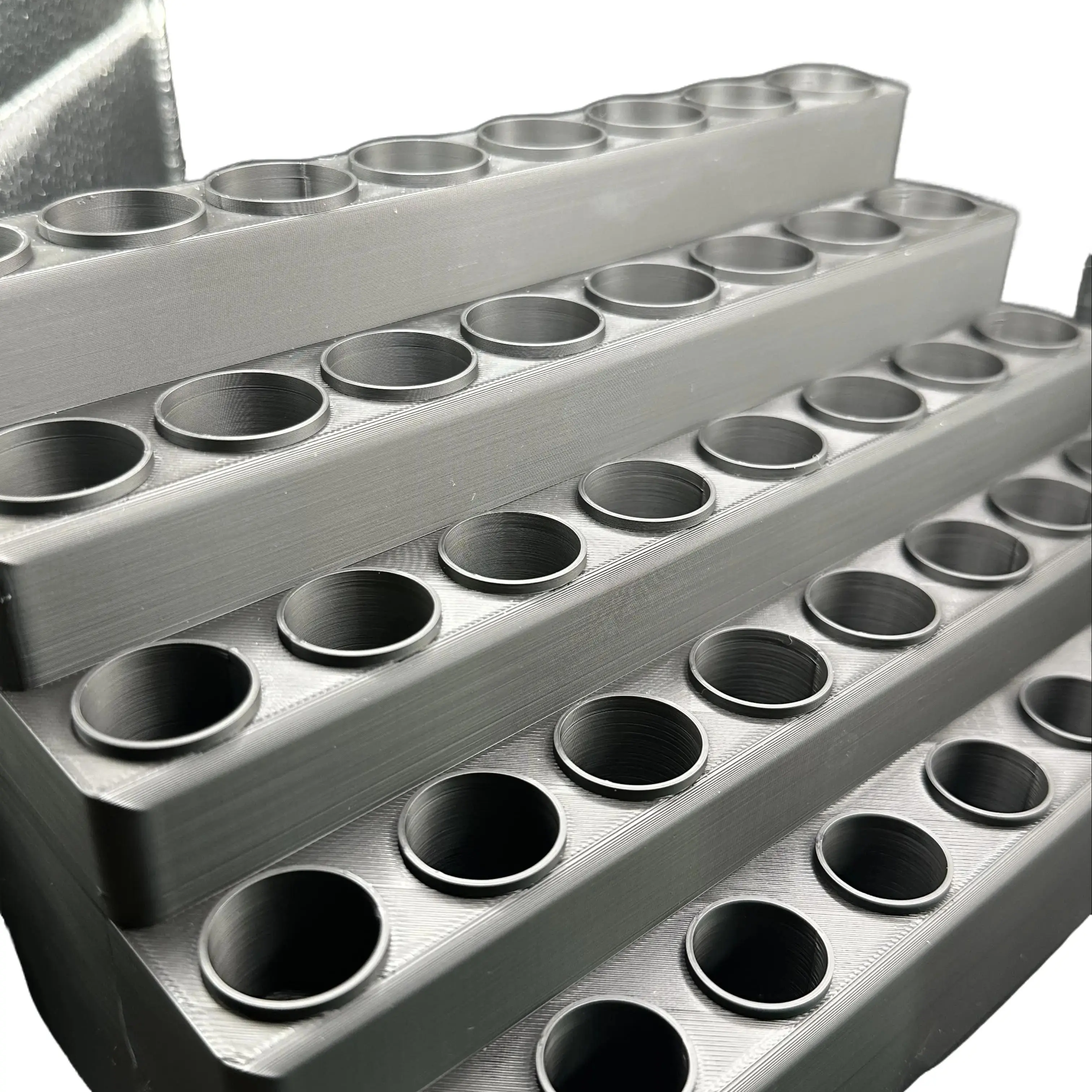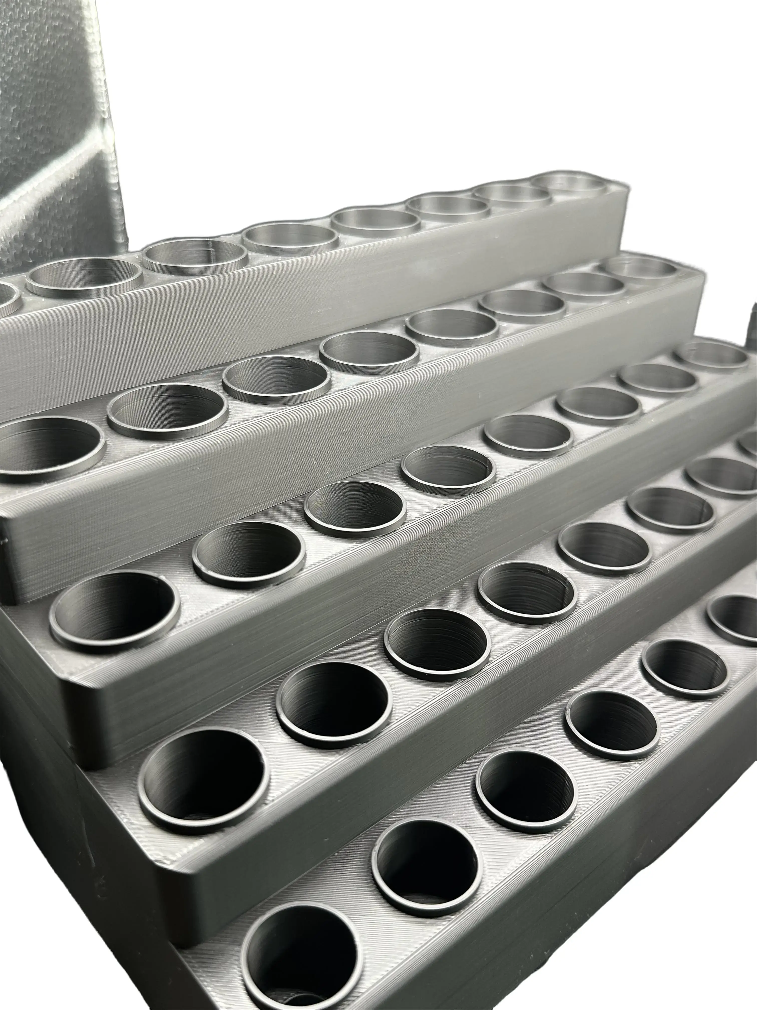Designed specifically for larger pens and display-focused setups, this model features a multi-tier layout with varying slot sizes and a shallower depth to showcase more of each pen.