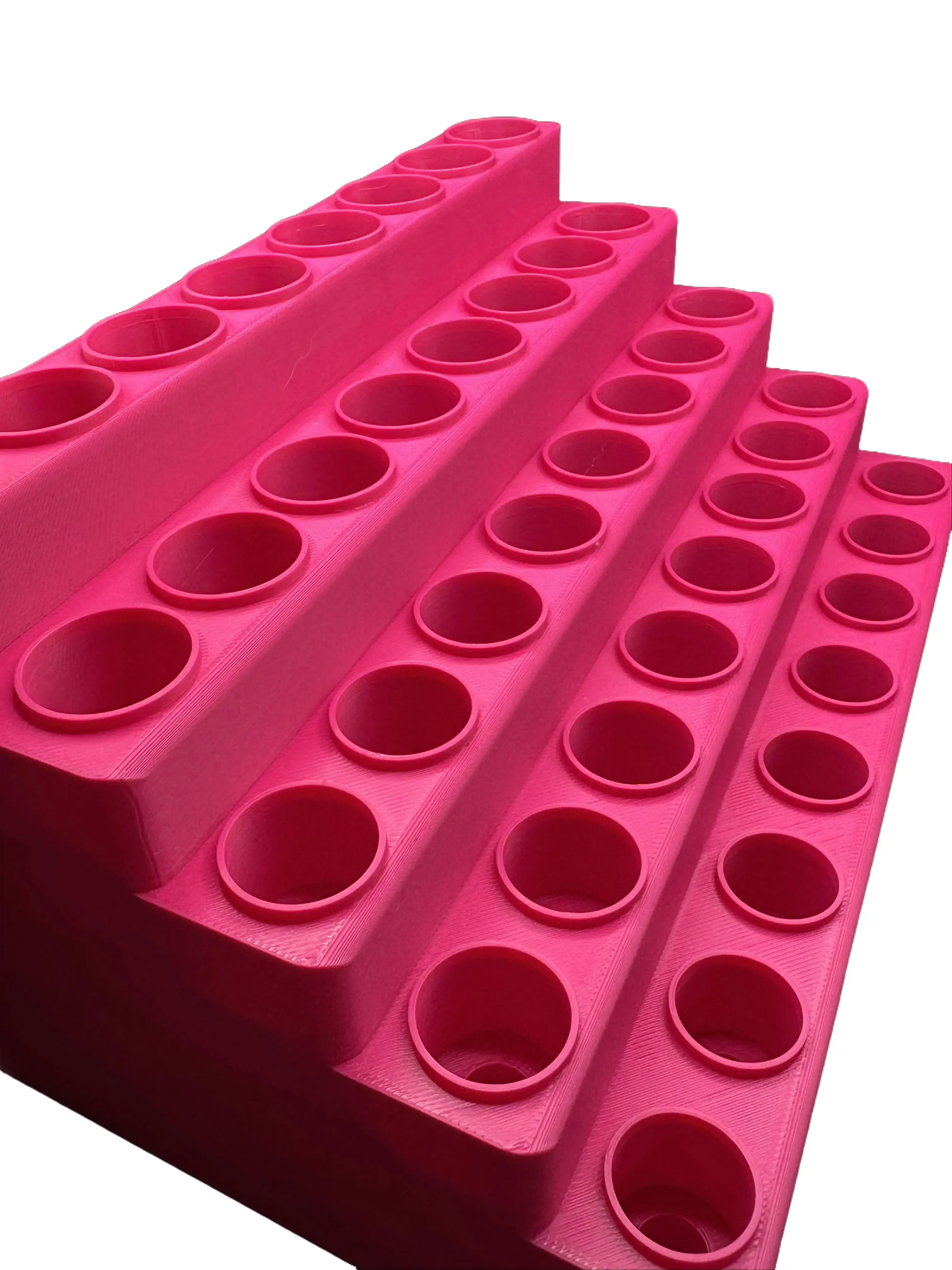 This 5-tier large pen display is built with precision-tapered slots to center and stabilize each pen, eliminating the wobble and uneven fit common with flat-bottom designs.