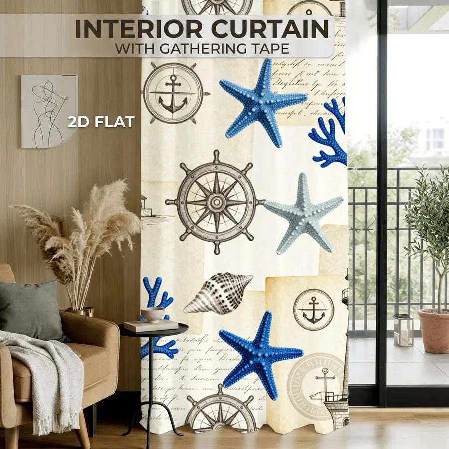 2Pcs Coastal Nautical Starfish Coral Lighthouse Pattern Sun Blocking Curtains Digital Printed Rod Pocket, Window Treatment For Bedroom Office Kitchen Living Room Study Home Decor