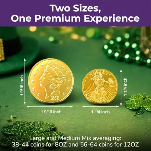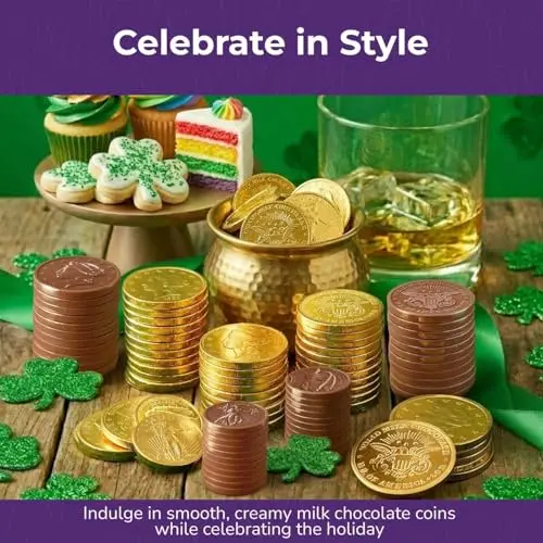 Festive Gold Wrapping for Easter: Each chocolate coin is wrapped in shiny gold foil and embossed with classic designs, making them perfect for St. Patrick’s Day parties, candy bowls, and decorations.