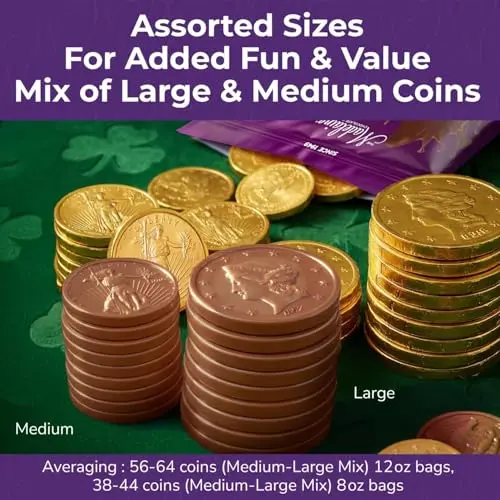 Bulk 1/2 LB Bag for Any Occasion: Each bag contains approximately 36 - 44 gold-wrapped chocolate coins, making them ideal for Easter celebrations, holiday parties, and everyday chocolate lovers.