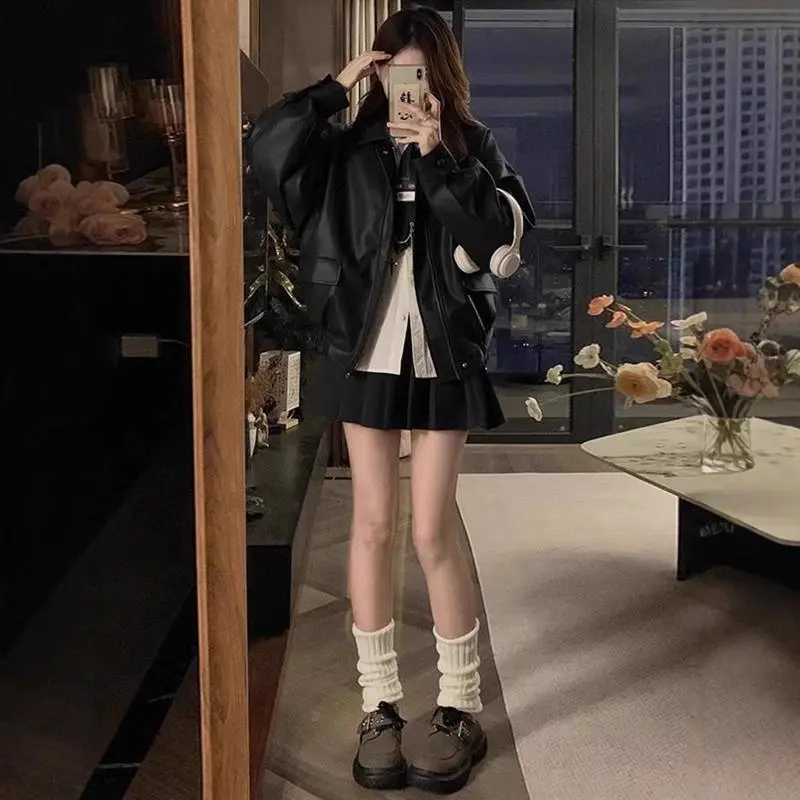 Maillard brown motorcycle leather jacket women 2026 new spring and autumn American retro windproof jacket coat tide