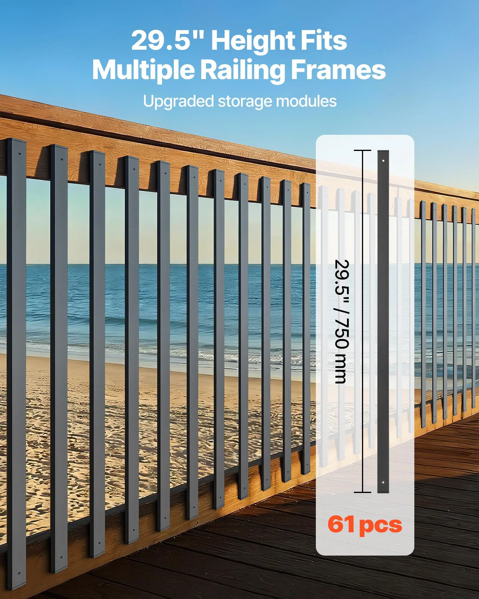 Standard Height: 29.53 in / 75 cm decking baluster fits many common railing frames for decks, porches, balconies, and stairs