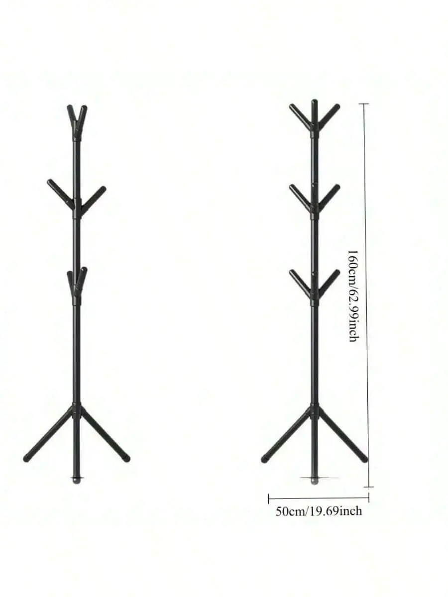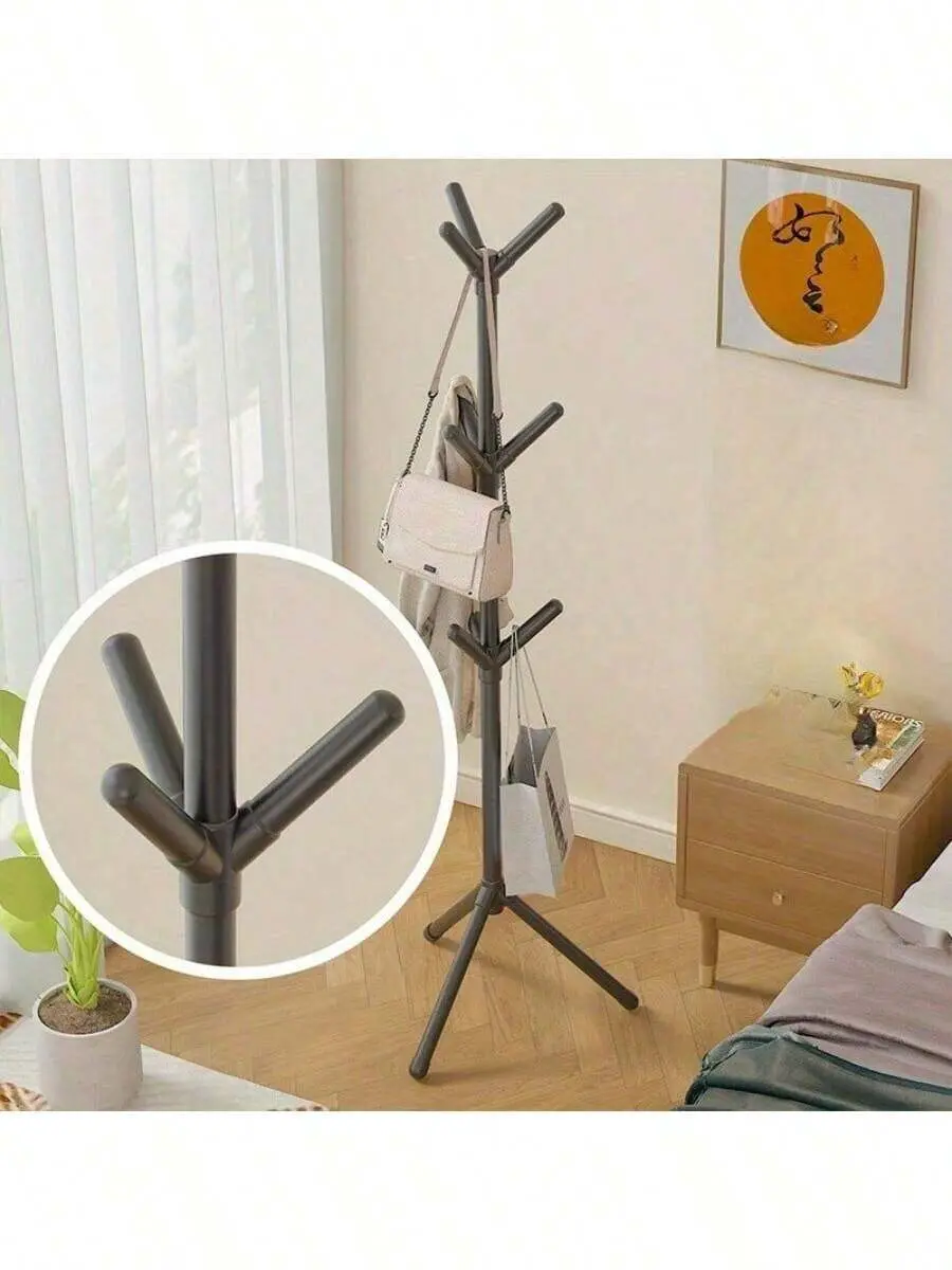 1 piece of metal floor-standing tree-shaped coat rack, multi-hook design, easy to move, suitable for storing clothes in the living room, balcony, bedroom, closet, etc., space-saving