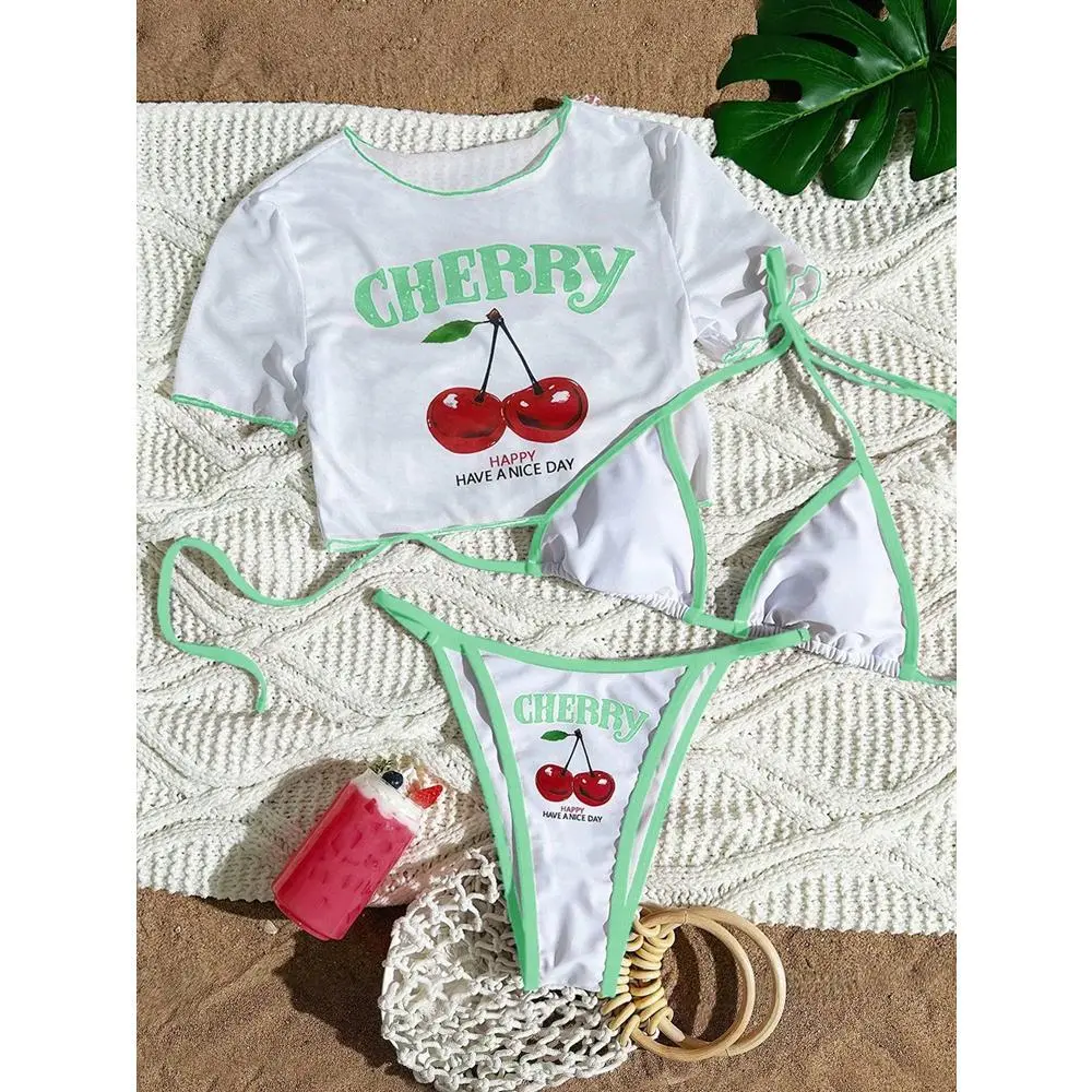 CHERRY Bikini 2026 New & Fresh Feeling Bathing Suit Three-Piece Swimsuit Print Beach Swimwear 7 Colors Size S-XL Available