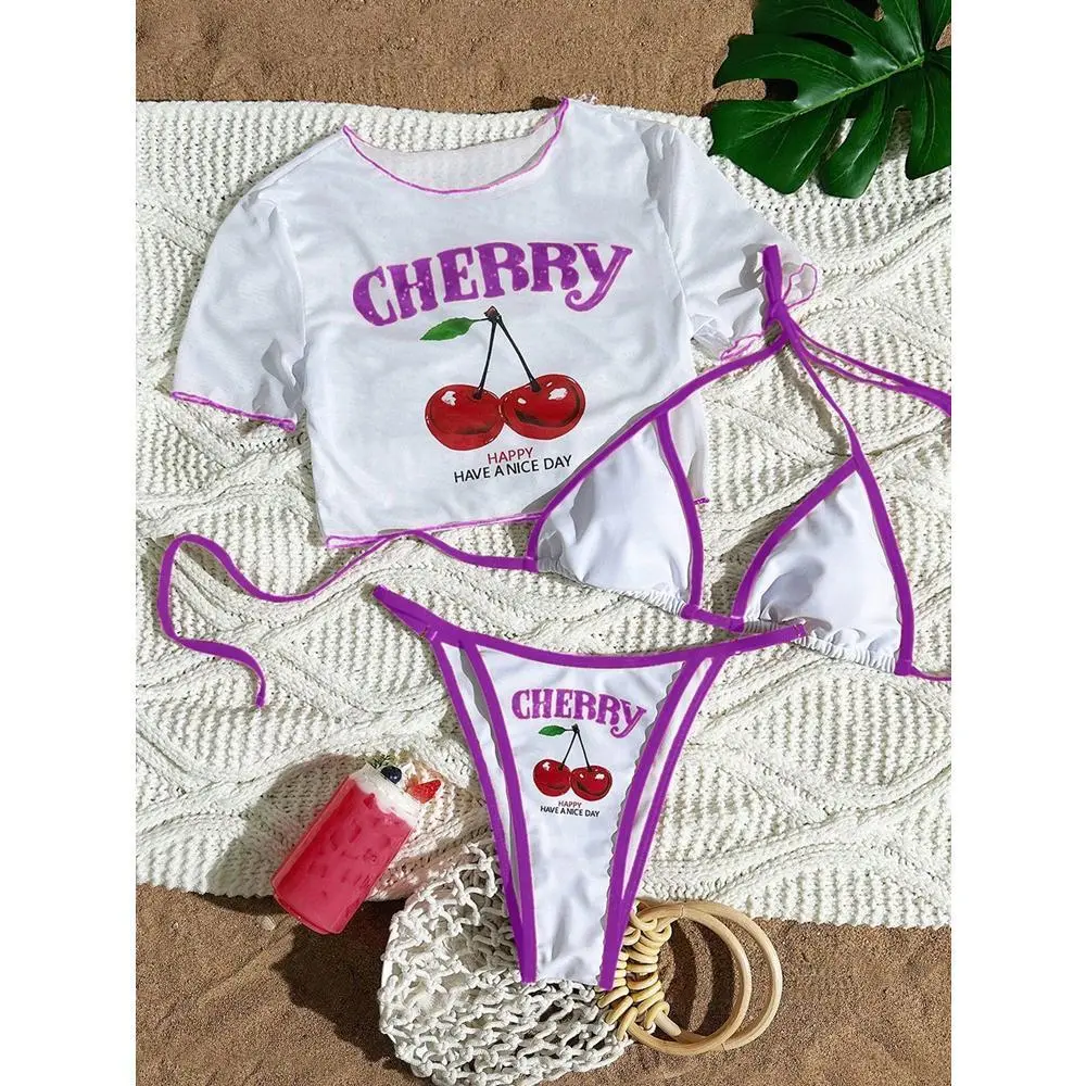 CHERRY Bikini 2026 New Sexy & Fresh Feeling Bathing Suit Three-Piece Swimsuit Print Beach Swimwear 7 Colors Size S-XL Available