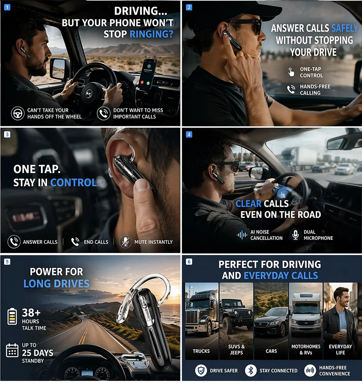 Whether you're driving, working, or handling daily tasks, this Bluetooth 6.0 headset lets you take calls instantly — without touching your phone.