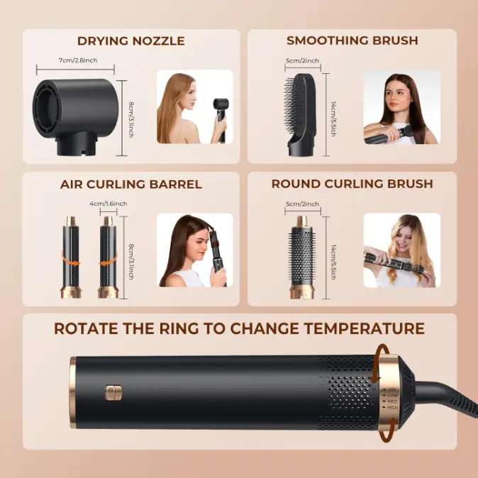 ·Detachable Hot Air Brush: Easily detach for different styling needs.