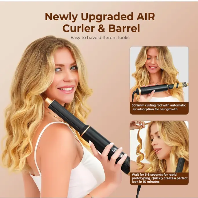 This versatile tool combines multiple functions for your hair styling needs. It serves as a blow dryer brush, air curler, and wrap styler. Perfect for drying, curling, and straightening, it offers a comprehensive solution for your hair care. The detachable hot air brush and negative ion curling brush iron add extra versatility. Ideal for achieving various hairstyles effortlessly.