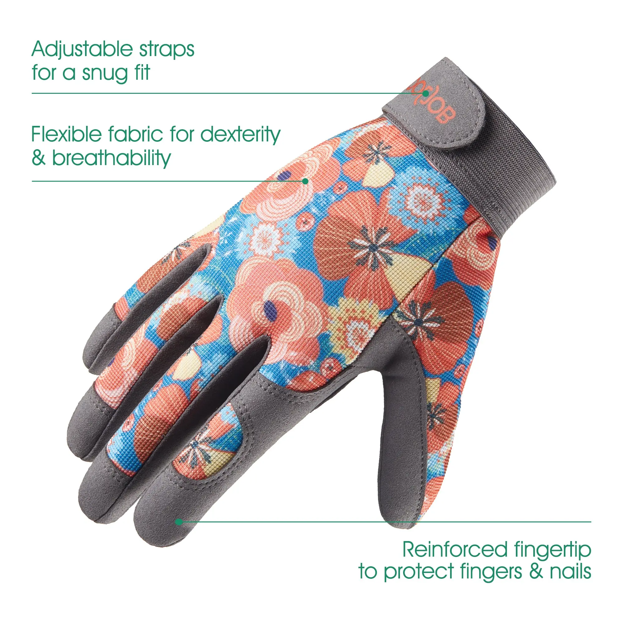 ·Cute Designs from COOLJOB: The top of our gloves is made from a breathable mesh, which is 4-way stretch and flexible. Allows air in and cools hands down. Printed in bright and cheerful flower pattern, our gloves will definitely be your favourite one. The velcro strap at the wrist aims to keep soil, debris and bugs out. Light to heavy duty works approved.
