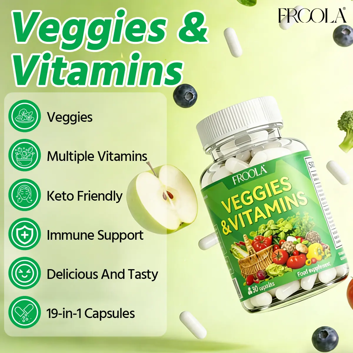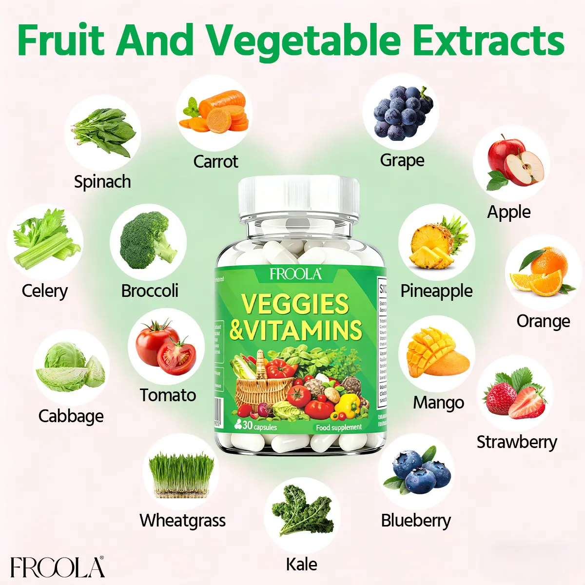 Frcola Veggies & Vitamins - Mixed Fruit & Vegetable Capsules: 30-Day Nutrition for Men and Women - Rich in Vitamins and Minerals | Dietary Supplement - Healthcare