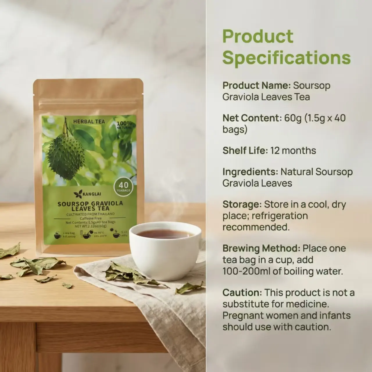 ·Non-GMO: 100% pure Soursop leaf tea bags, free from GMOs.