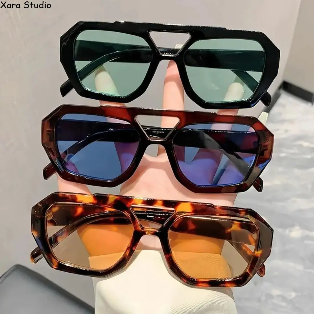 - Set of three large rectangular sunglasses