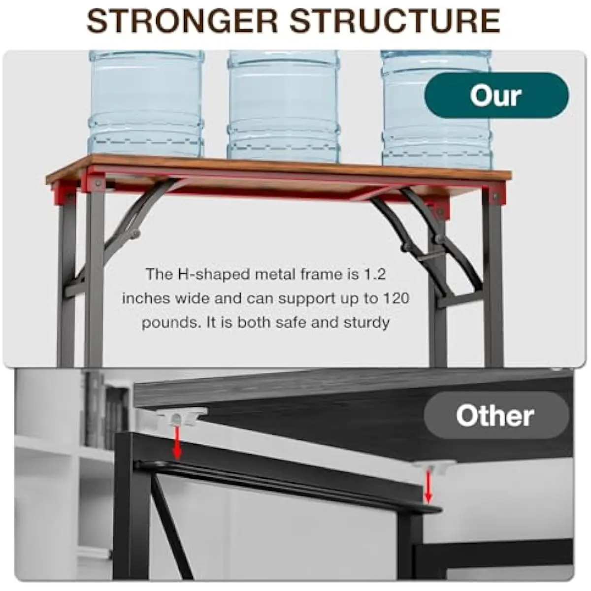👍𝗦𝗧𝗨𝗥𝗗𝗬 𝗦𝗧𝗘𝗘𝗟 𝗦𝗧𝗥𝗨𝗖𝗧𝗨𝗥𝗘 𝗙𝗢𝗥 𝗠𝗔𝗫𝗜𝗠𝗨𝗠 𝗦𝗧𝗔𝗕𝗜𝗟𝗜𝗧𝗬 — Built with a one-piece frame tightly secured to the desk surface, reinforced with metal legs and high-tension springs, this foldable desk supports up to 200 lbs. The frame features arc welding at all joints, ensuring durability without any wobbling or shaking.The table legs have adjustable pads to fit uneven floors and protect carpets