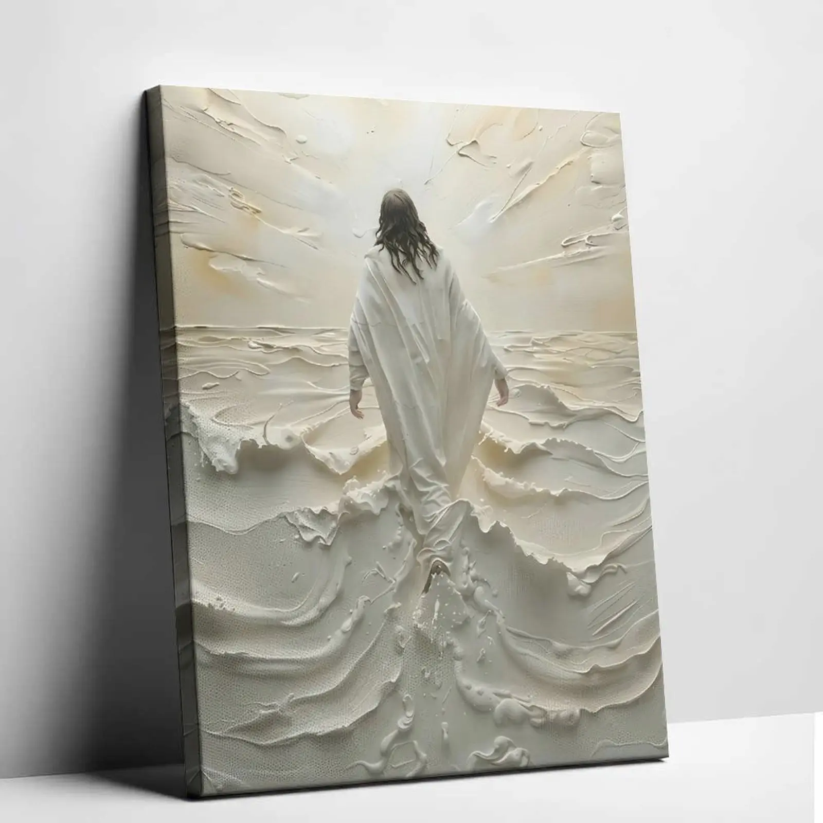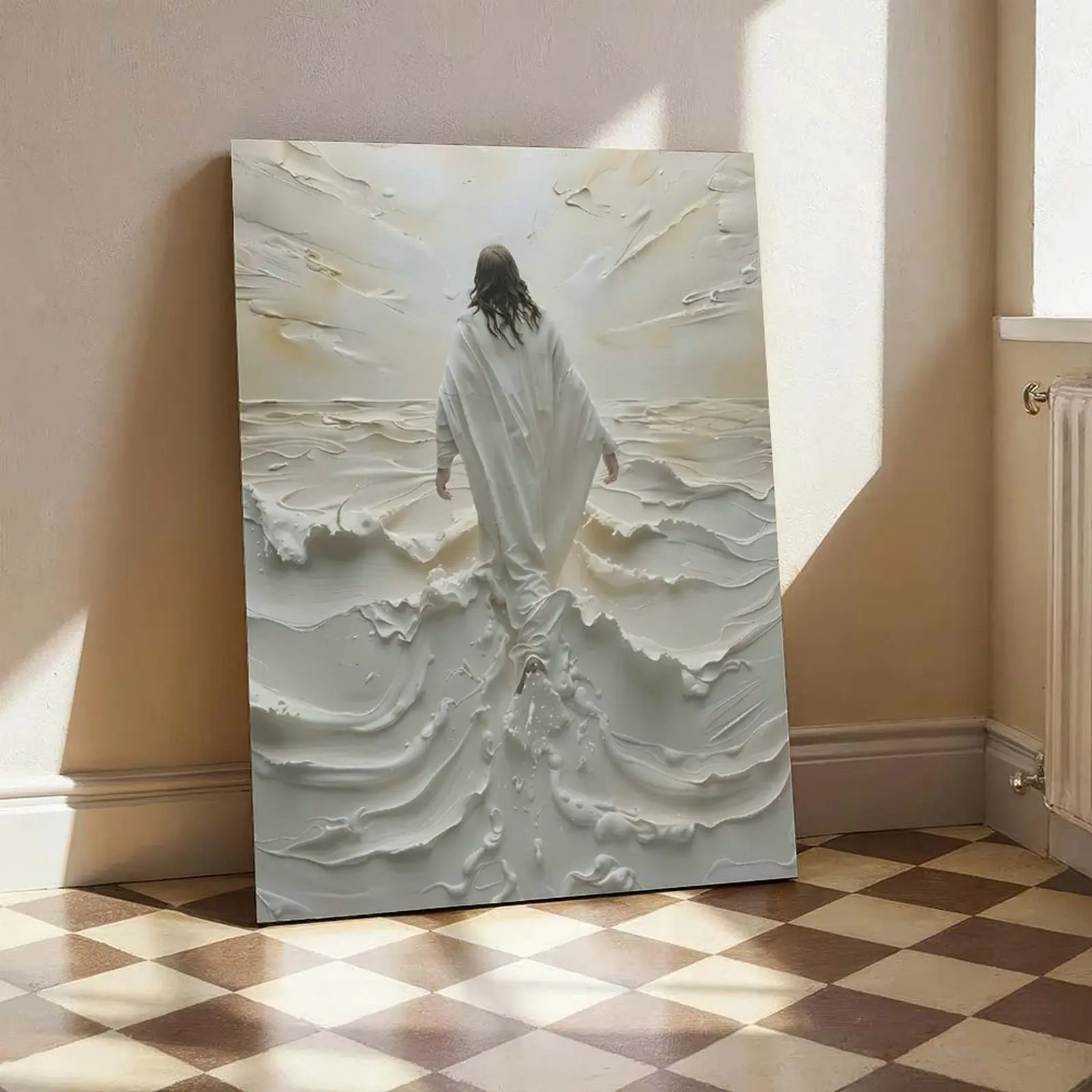 ·Aesthetic Monochrome Design: This wall art features a monochrome depiction of Jesus walking on water, inspired by faith. Perfect for those seeking a serene, religious ambiance. 📸