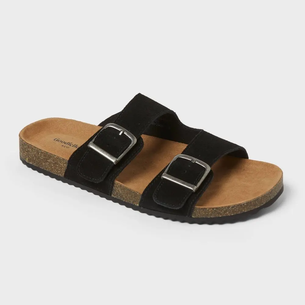 Whether heading to the park or an evening stroll, these Saul Suede Two Band Sandals from Goodfellow & Co makes a great addition to your casual wardrobe. These suede sandals with two band straps with a buckle closure for a secure fit and boasts a contoured footbed for comfortable wear. Designed with an open round toe for breezy feel, these medium-width sandals come in a slip-on style for easy on and off.