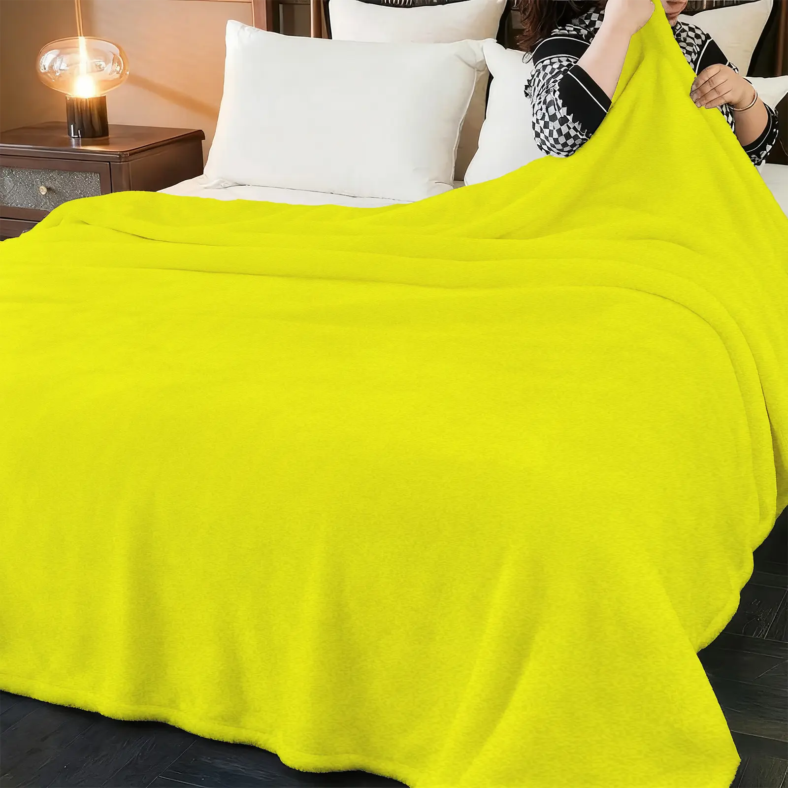 Neon Yellow Solid Flannel Throw Blanket, Soft Cozy Plain Blanket, Warm Versatile Decor Throw for Couch, Bedroom, Ideal Gift for Teens, Home Decor Lovers