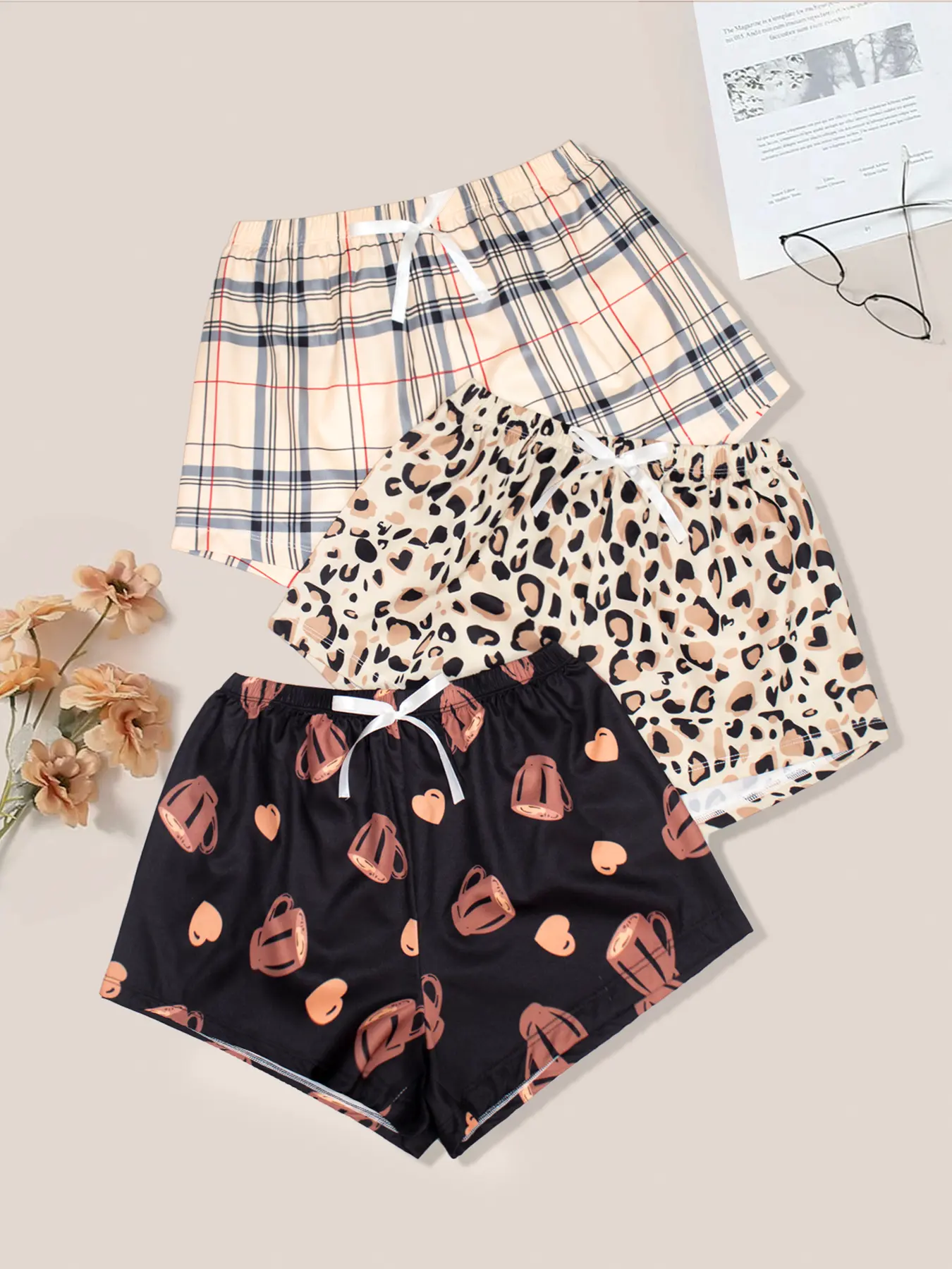 Chic & Playful Prints: Features trendy designs like classic plaid, leopard print, and cute heart & coffee cup motifs, adding a fun, stylish touch to your loungewear collection.