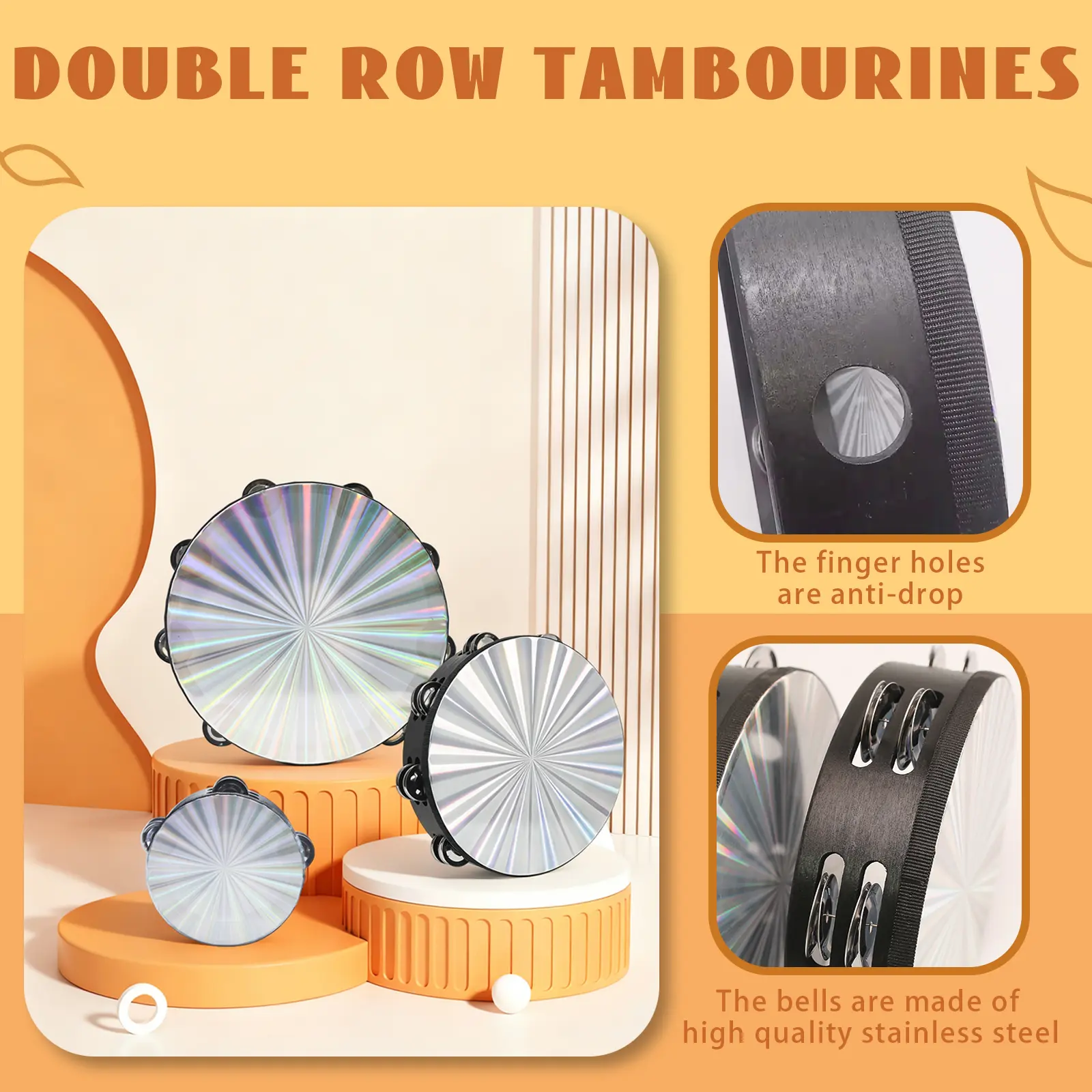 11pcs Tambourine Set, Half Moon Tambourine, Wrist Bells, Maracas, Rhythm Sticks, Reflective Handheld Tambourines, Percussion Instrument for Adults Church School Party And Karaoke.