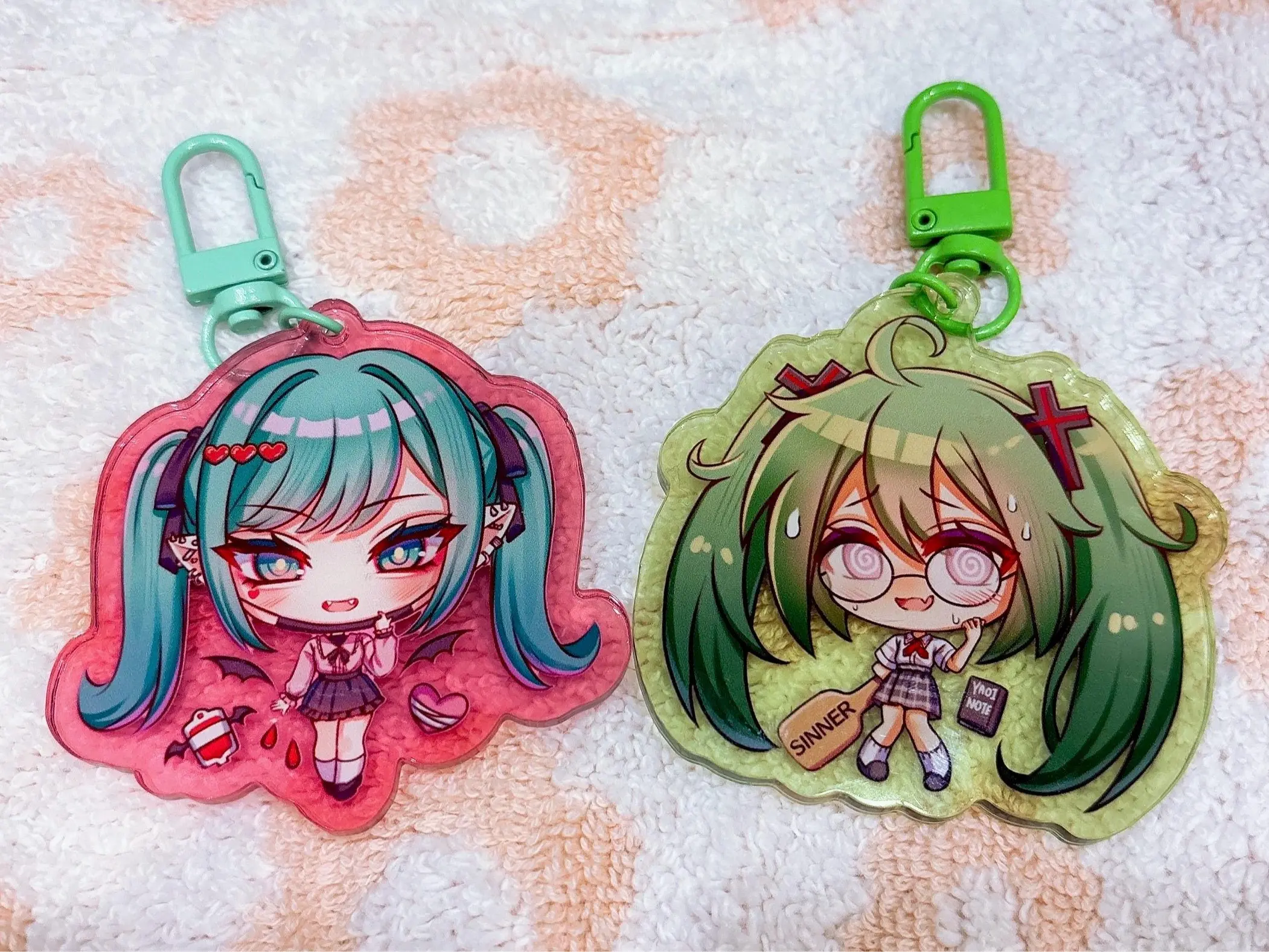 Note: All keychains come with a standard round keyring. Colored clasps, star-shaped hooks, or other decorative attachments shown in images are for display purposes only.