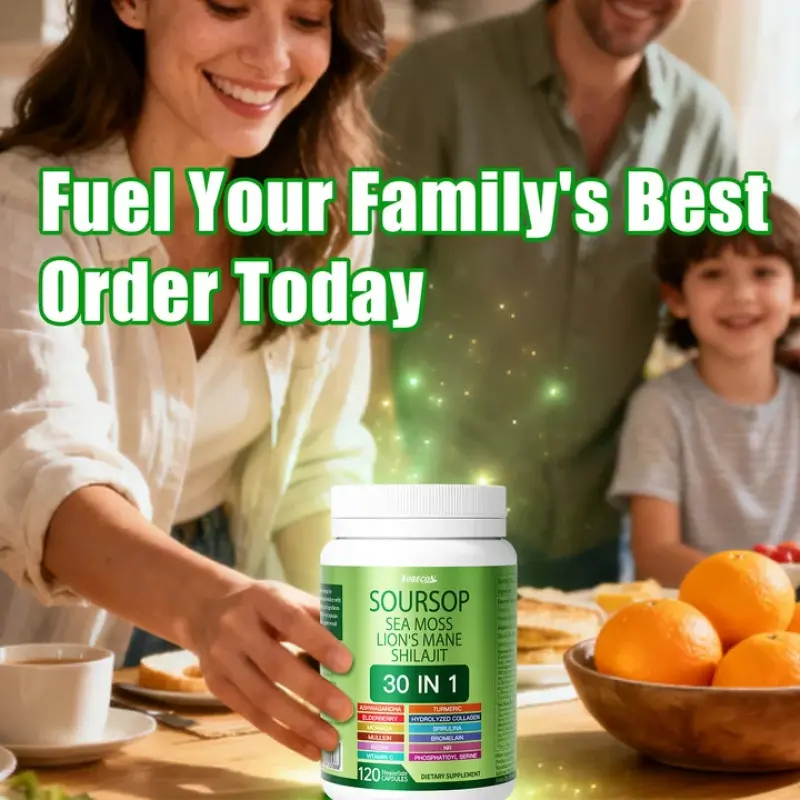 30-in-1 Betel Tree Capsules - Contains Lycanthropis, Sambucus, Stone Resin, Seaweed, and Lion's Mane.Contains 120 capsules, designed to promote skin and gut health and provide antioxidant support