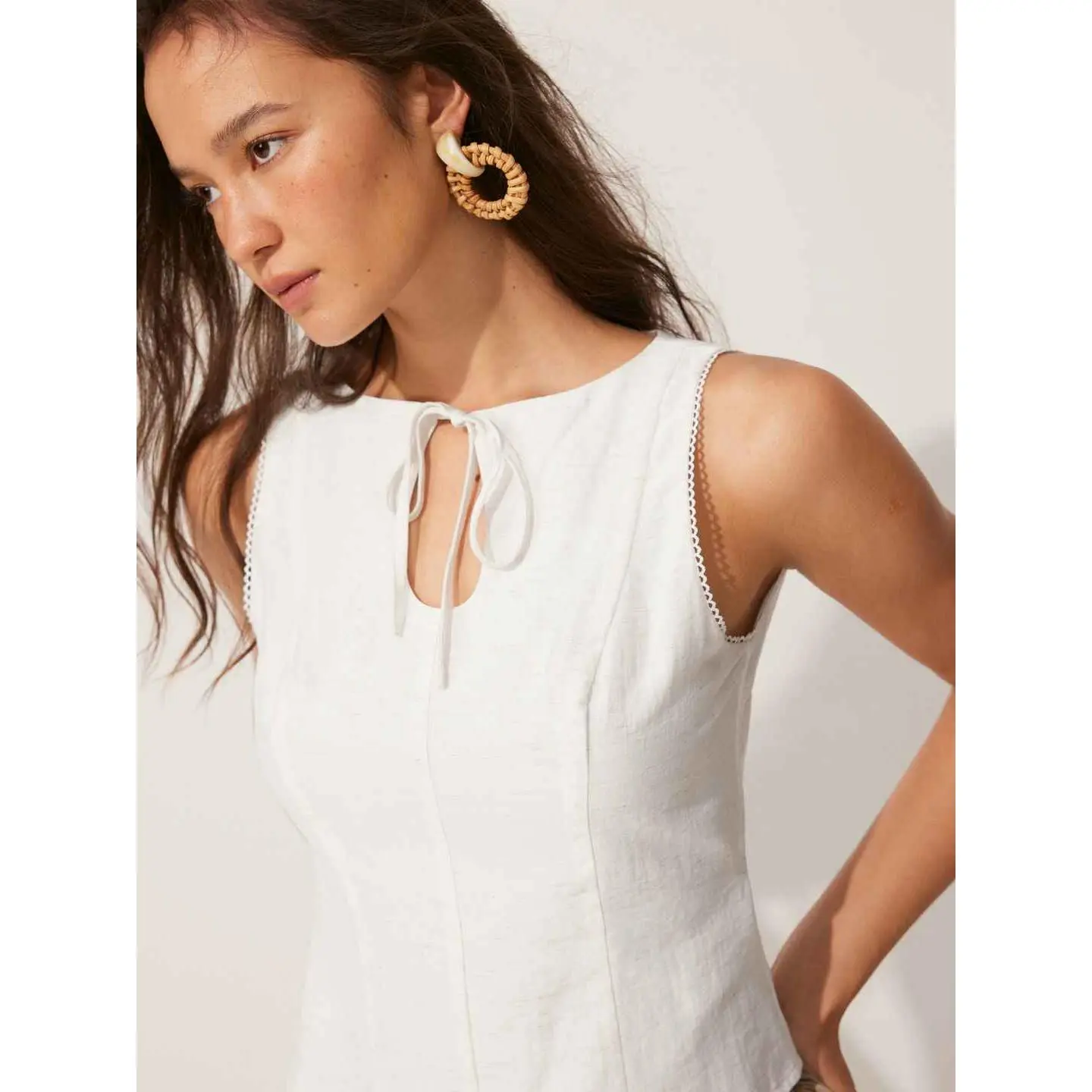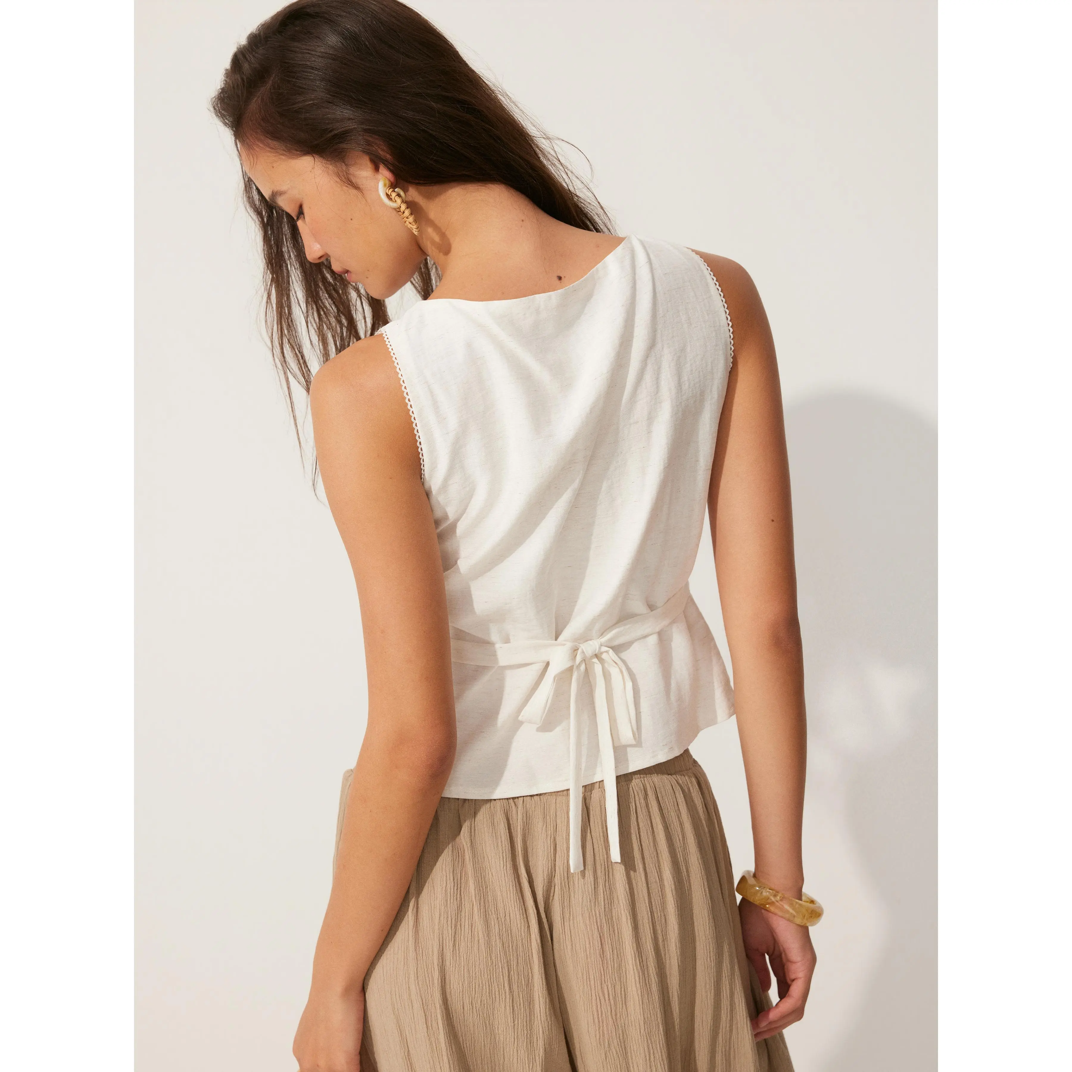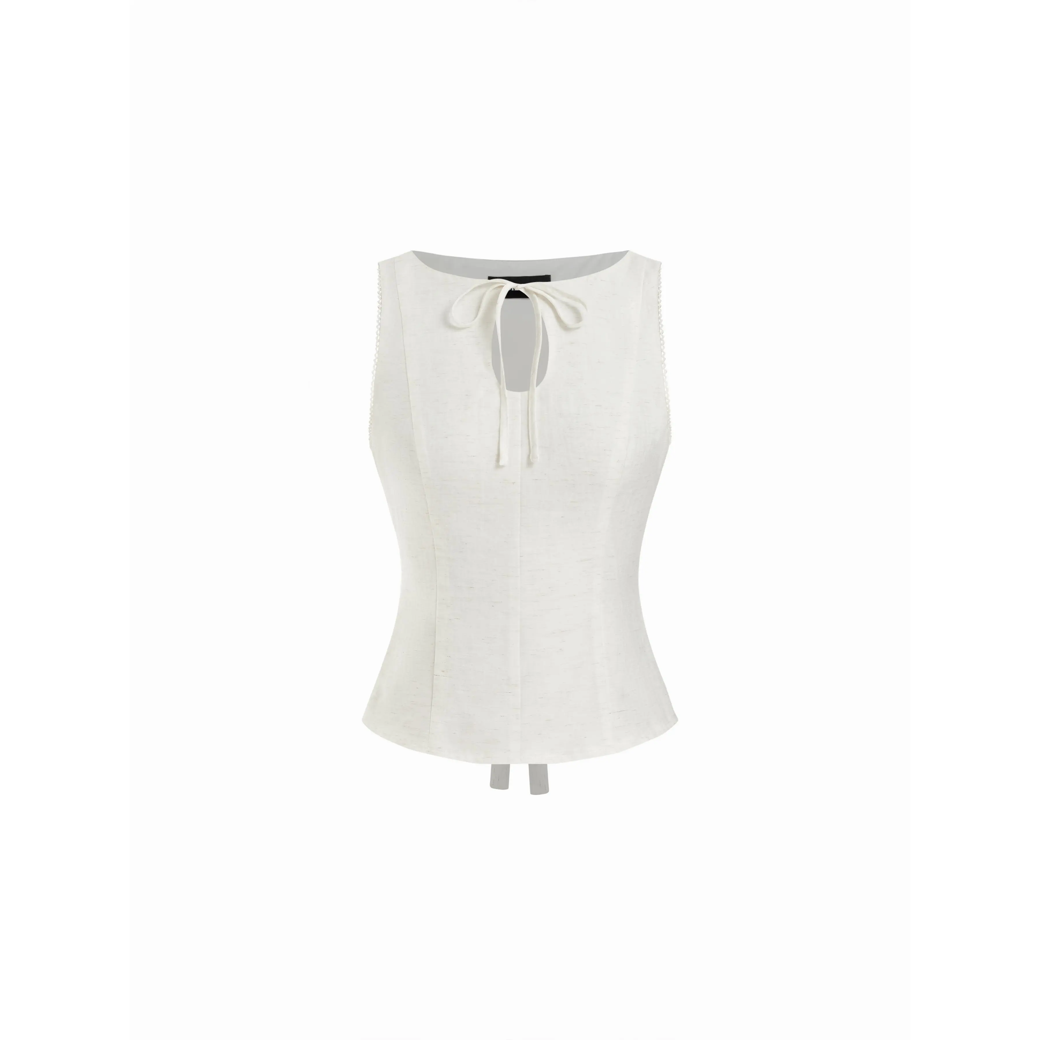 5. Cider Linen-blend Boat Neck Knotted Sleeveless Blouse