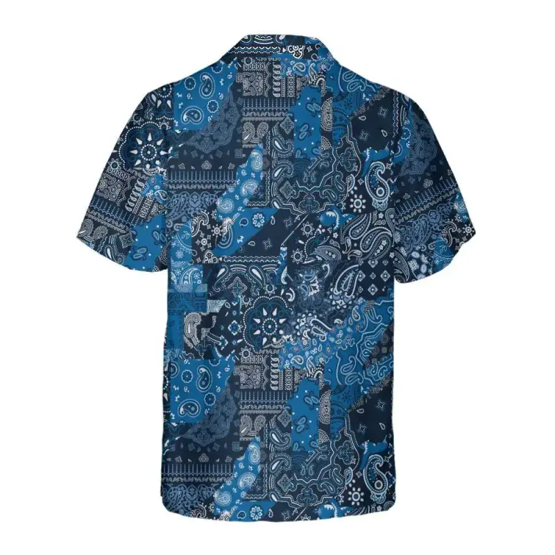 5. Print Blue Bandana Kerchief Paisley Pattern Hawaiian Shirt Men Women, Casual Short-Sleeve Hawaiian Shirt with Oceaed Hawaiian Shirt, Vintage Summer Shirt, Casual Summer Shirt, Gift for Men Womenn-Them