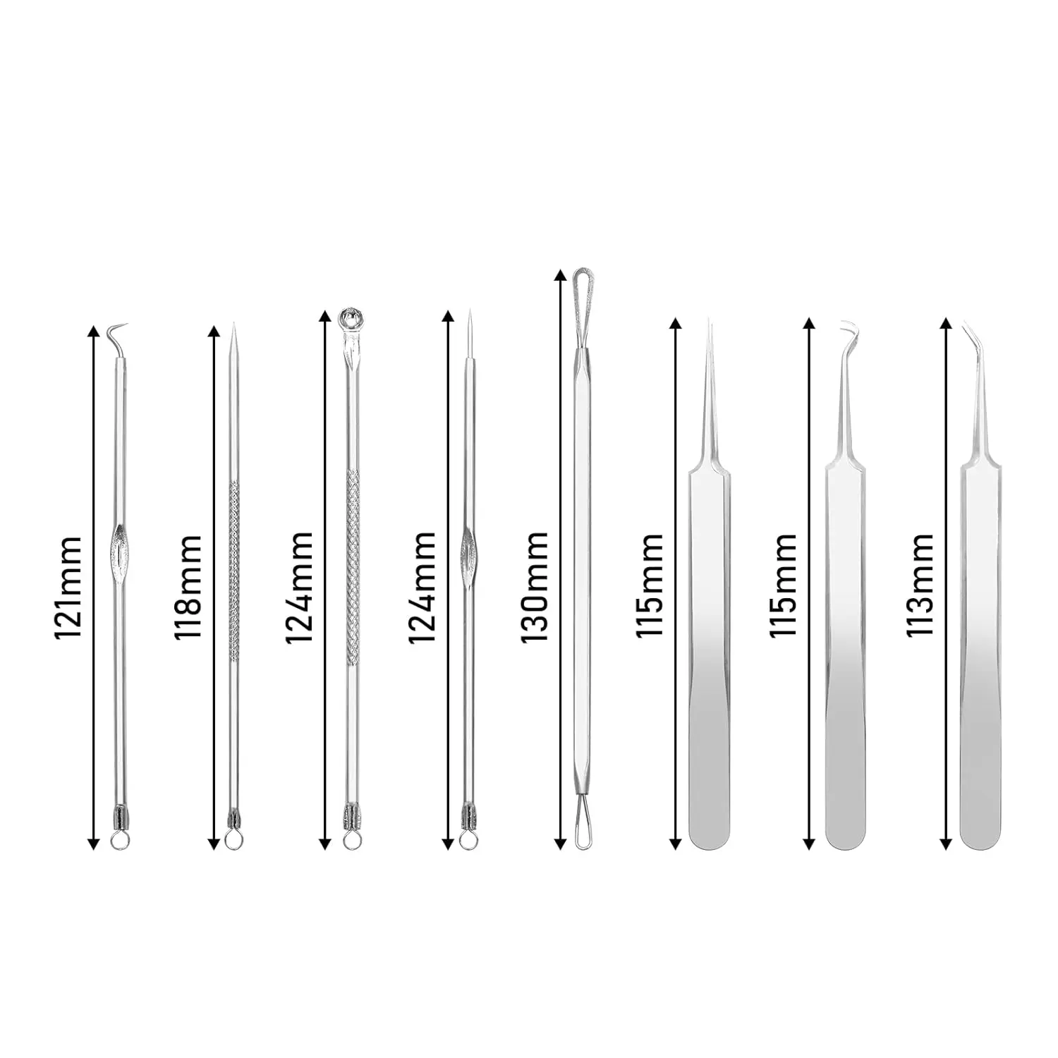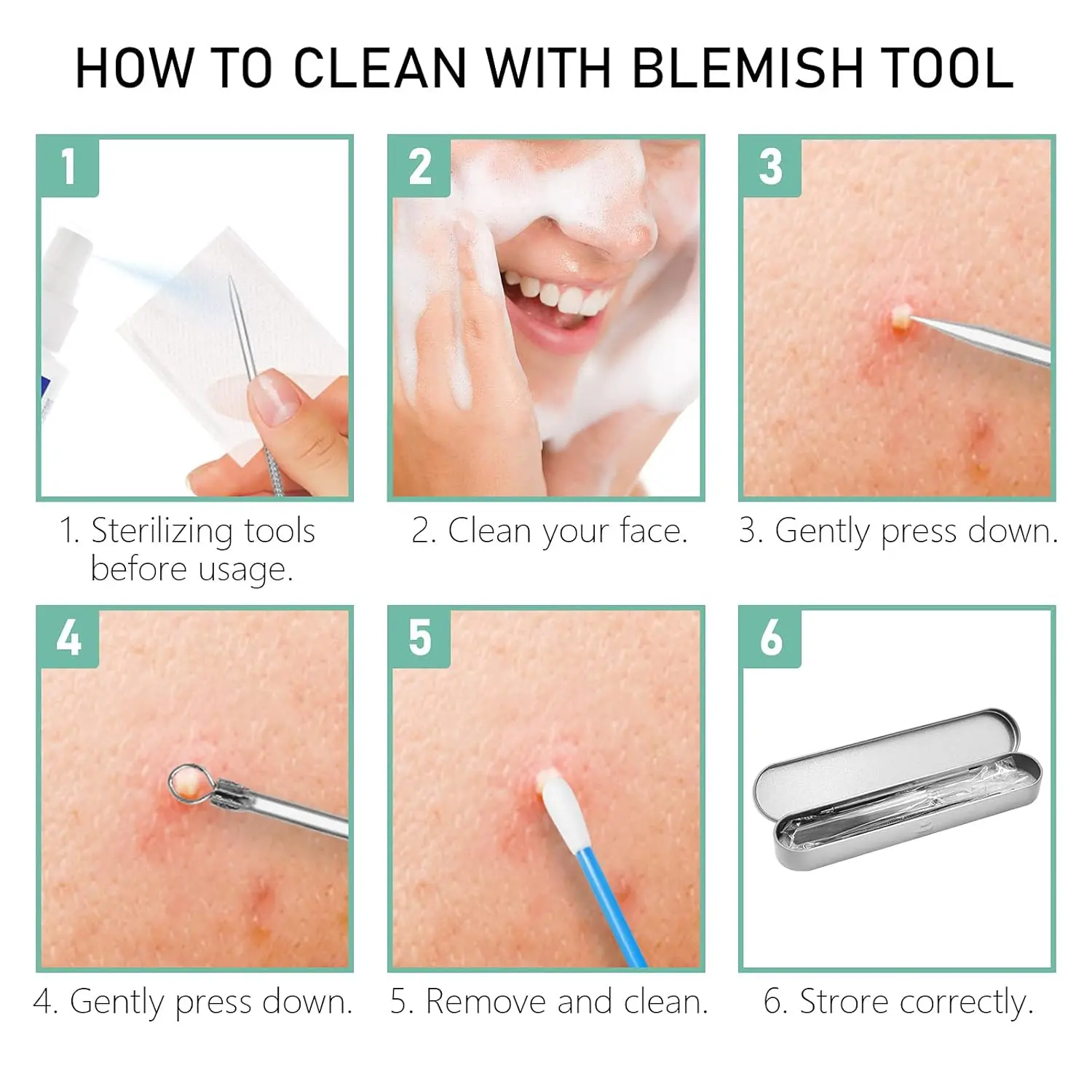 This set includes 8 specialized tools, each tailored for different blemishes and facial areas. All tools are neatly stored in a portable case, ensuring they are always ready for use. Perfect for maintaining a clear complexion.