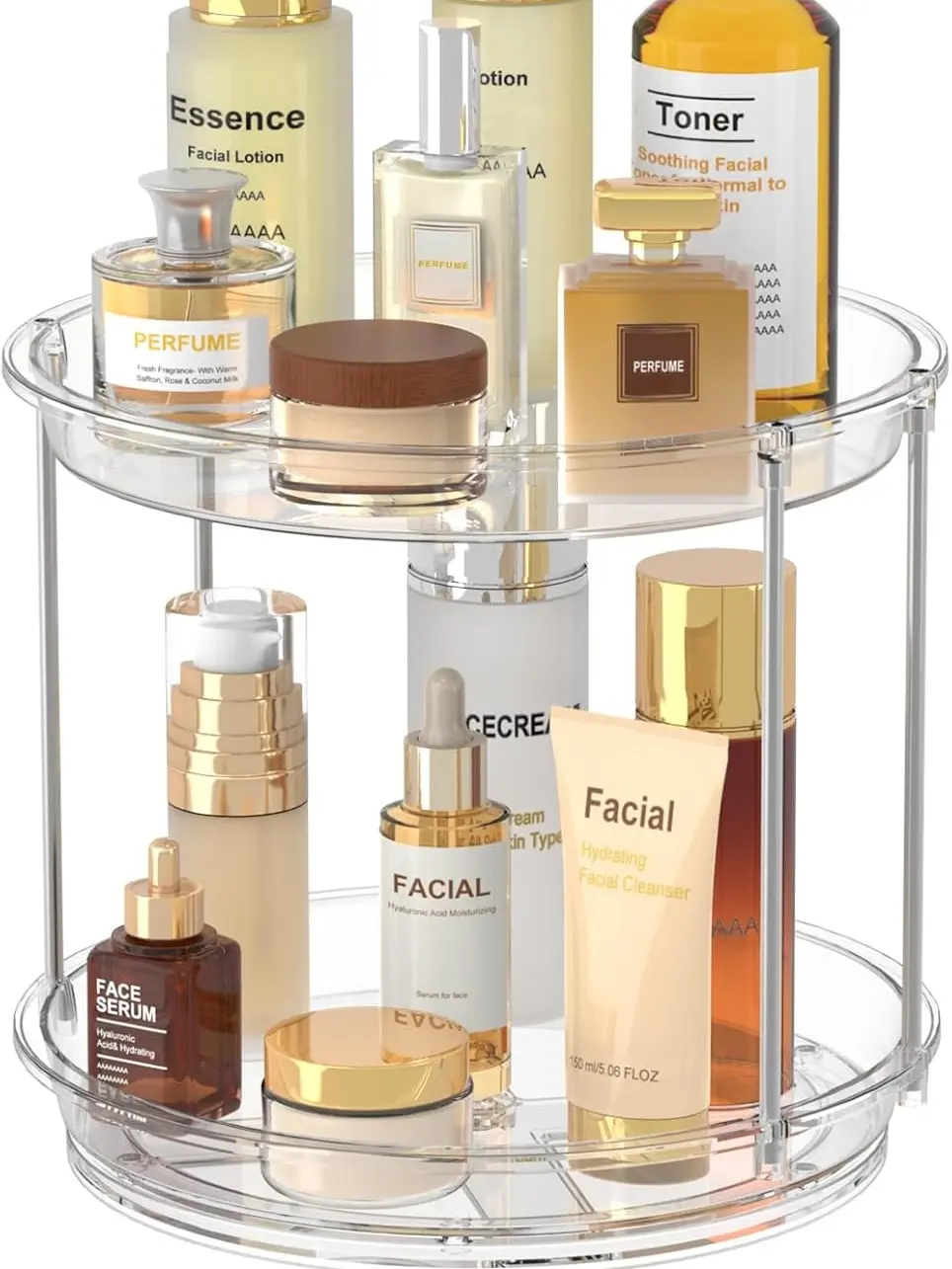·Versatile Storage Solution: This 2-piece bathroom organizer countertop easily meets all your storage needs. It functions perfectly as a perfume and skincare organizer, and doubles as a kitchen cabinet spinning tray for spices, seasonings, cans, beverages, medicine and more