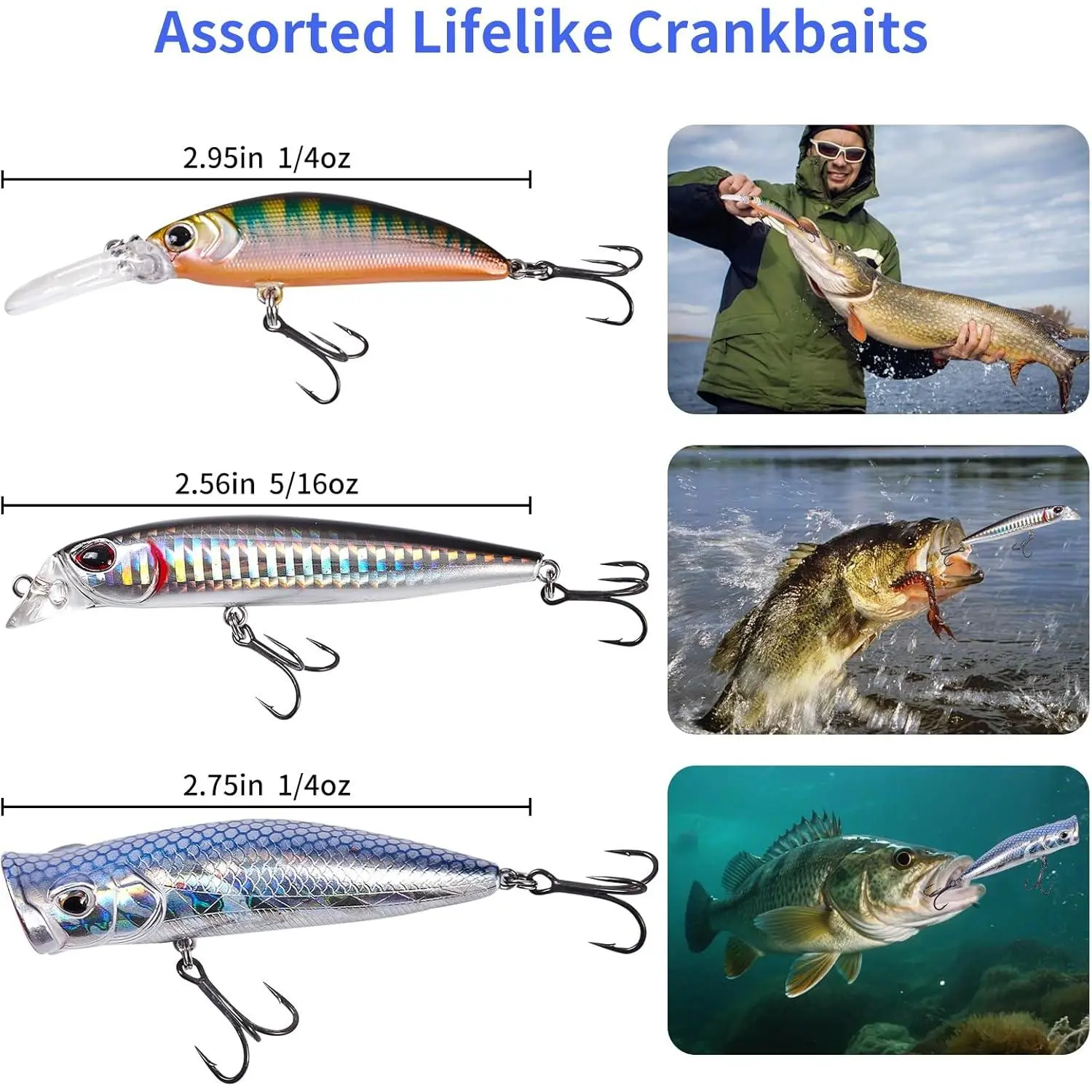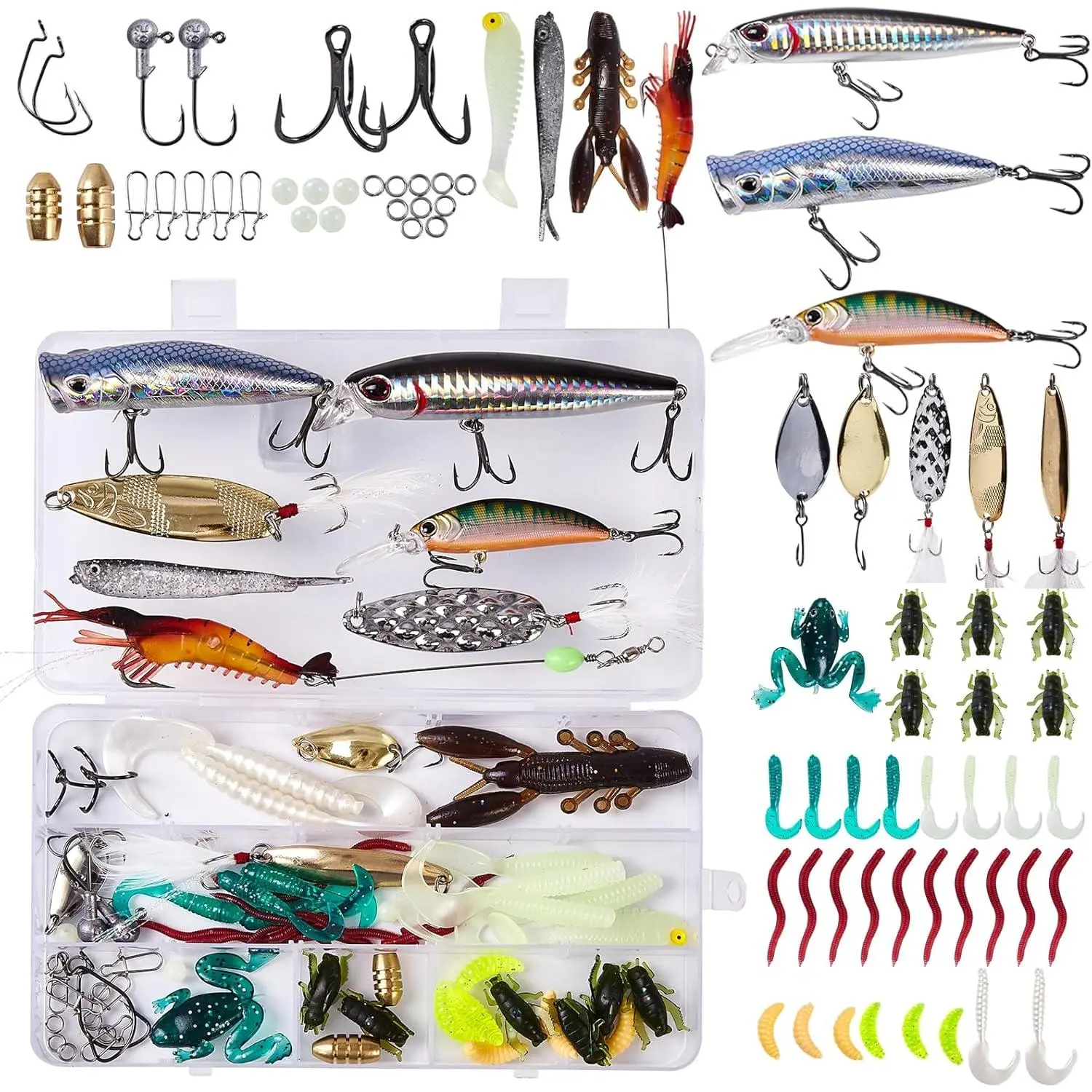 Fishing Tackle Kit with Tackle Box, Bass Fishing Lures Set for Freshwater Bass & Trout, Crankbaits, Frogs, Soft Plastic Worms, Spinnerbaits, Jigs – Fishing Gear