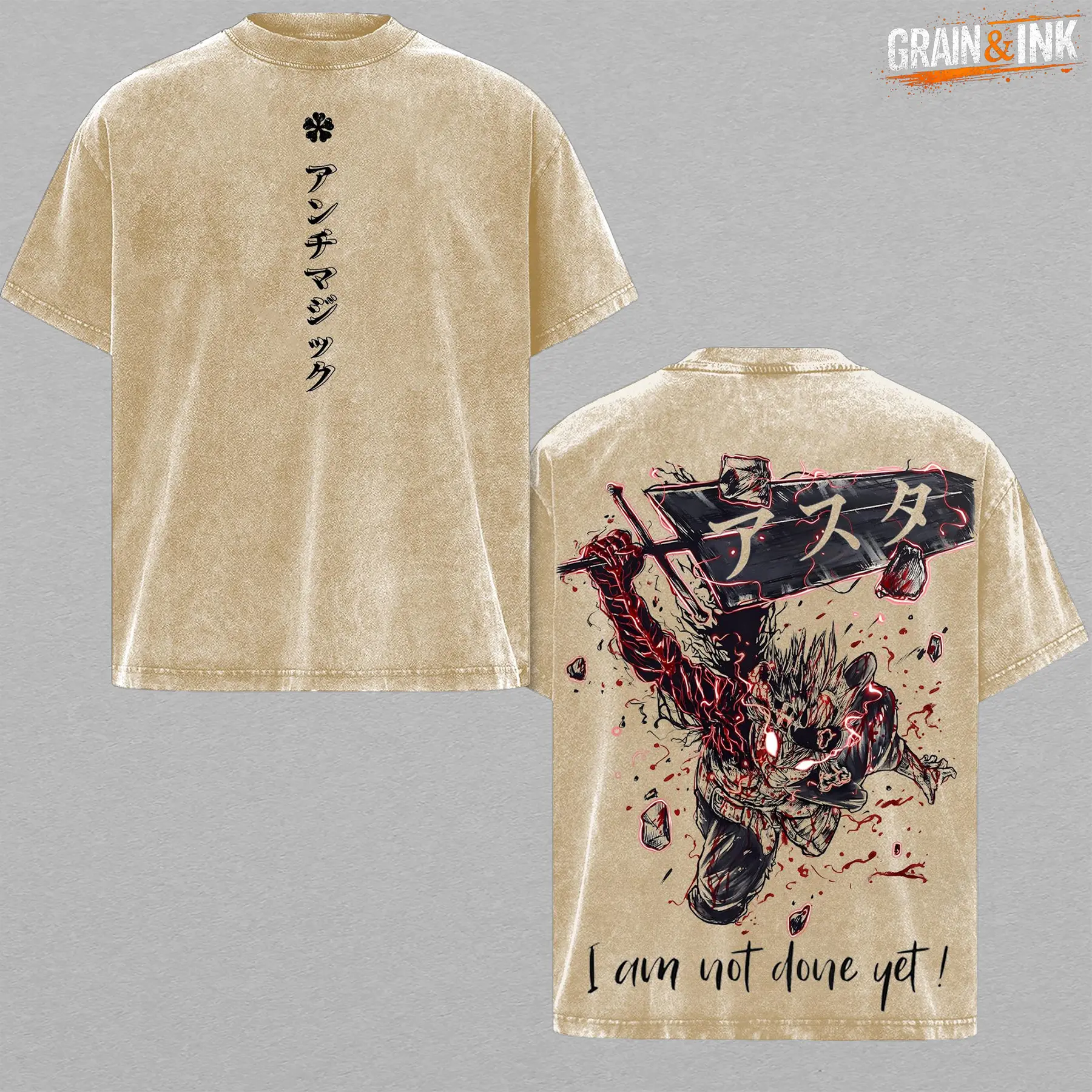 Black Clover Asta Shirt – Vintage Acid Washed Oversized Graphic T Shirt, Black Bulls Anti Magic Anime Streetwear Dark Aesthetic Heavyweight Cotton Unisex Tee, Gift for Anime Fans