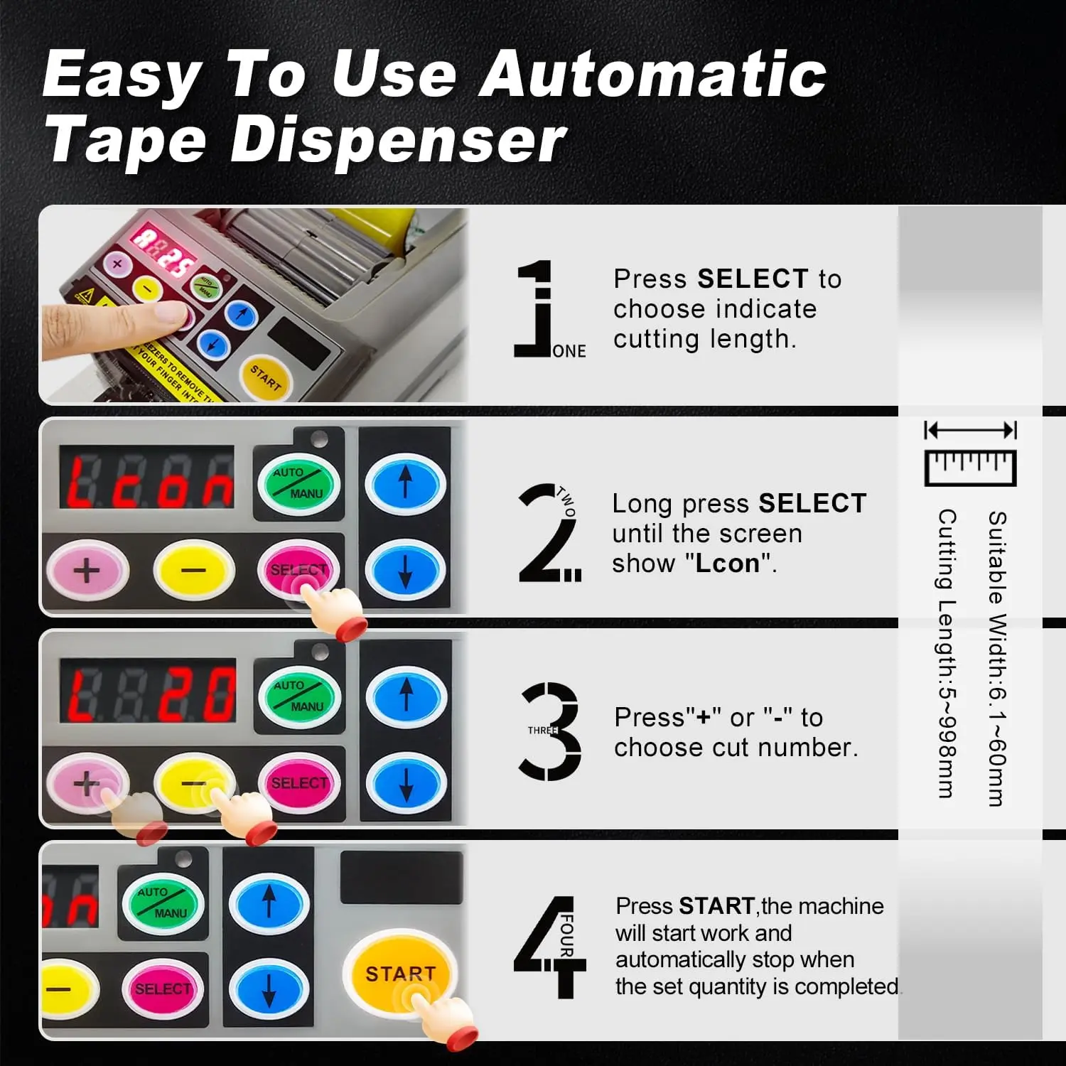 Ribbon Cutting Machine, Automatic Tape Dispenser Cutting 6-60mm Width 999mm Max Cutting Length, Electric Tape Cutting Machine for Office Shipping, Businesses, Home Use