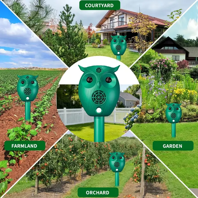 **All-Weather Durable Design:** Thanks to its waterproof and robust construction (rated IP65), this device operates safely and reliably even in rainy weather or muddy environments. Come rain or shine, through every season—spring, summer, autumn, and winter—your garden remains fully protected. Simply stake this outdoor solar ultrasonic repeller into the ground or hang it in a sunny spot, flip the switch to "on," and it's ready to go. It is ideal for use in a wide variety of settings, including yards, gardens, farms, orchards, lawns, porches, pool areas, boats, and campsites.