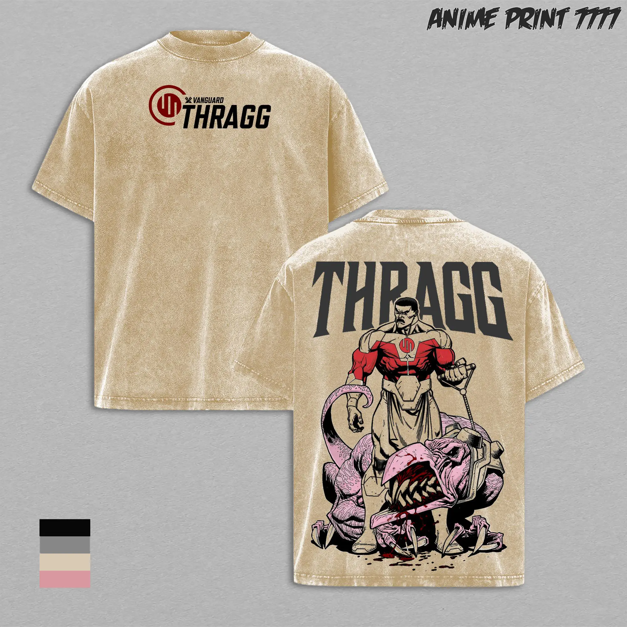 Thragg Invincible Viltrumite King Graphic Tee | Vintage Washed Oversized Heavyweight T Shirt | Dark Villain Comic Streetwear Shirt | Large Back Print Graphic Tee | Heavy Cotton Unisex | Gym Pump Cover Gamer Outfit | Gift For Invincible Fans