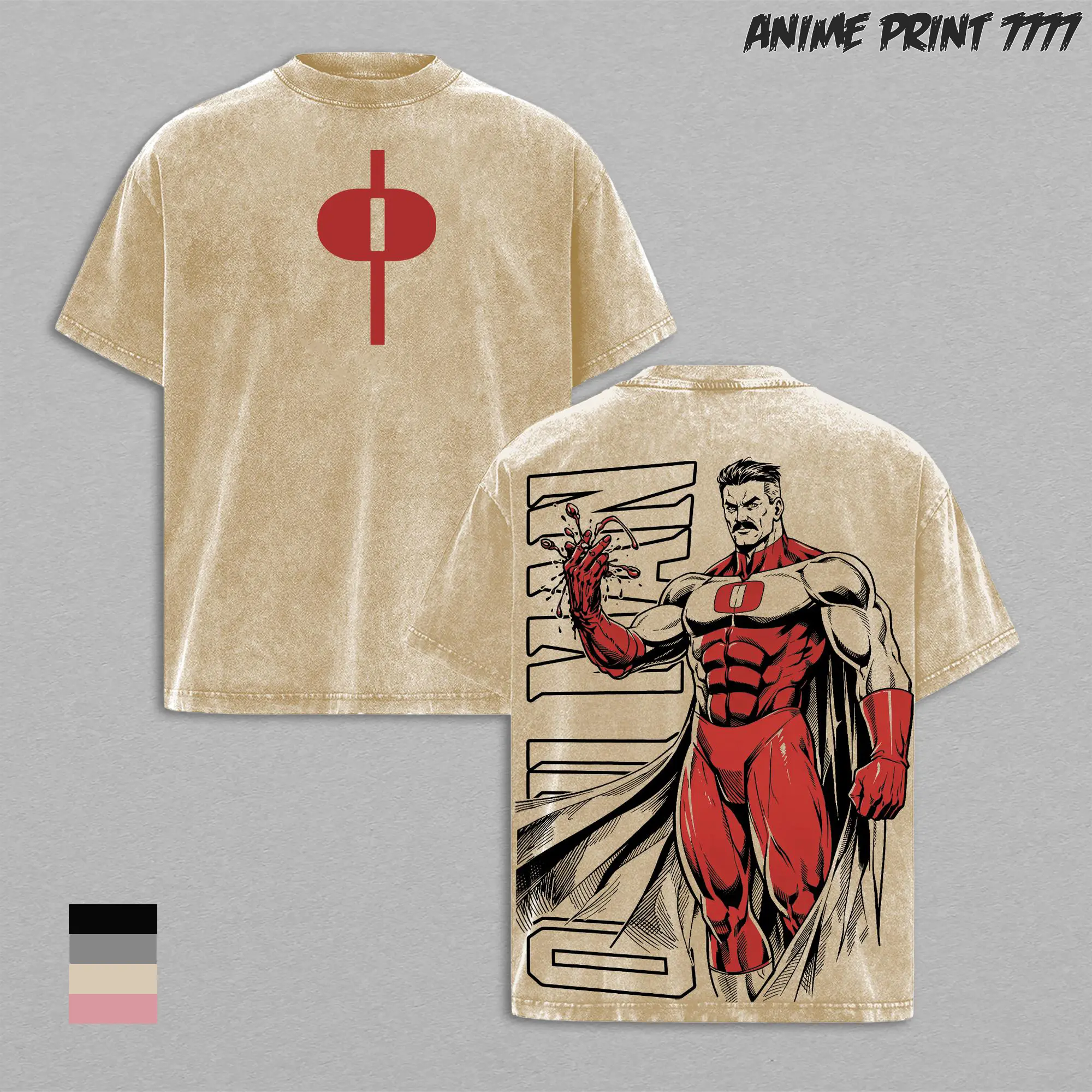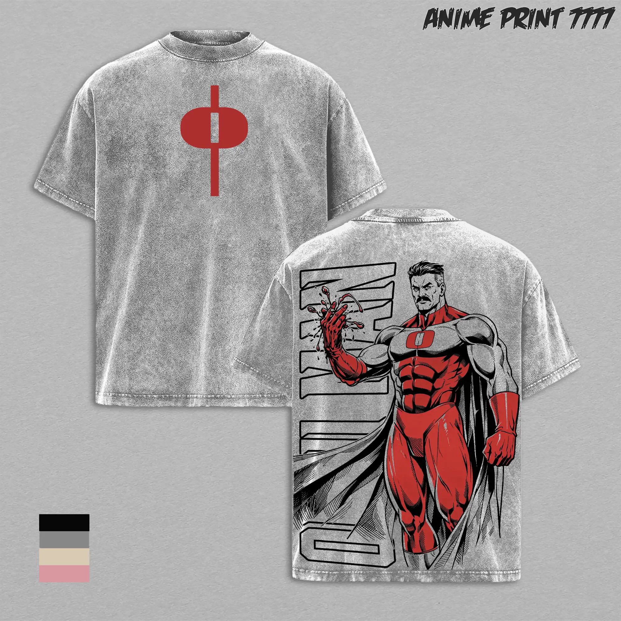 Omni Man Invincible Graphic Tee Vintage Washed Oversized Heavyweight T Shirt | Dark Superhero Villain Comic Streetwear Shirt | Blood Power Back Print Graphic Tee | Heavy Cotton Unisex | Gym Pump Cover Gamer Outfit | Gift For Invincible Fans