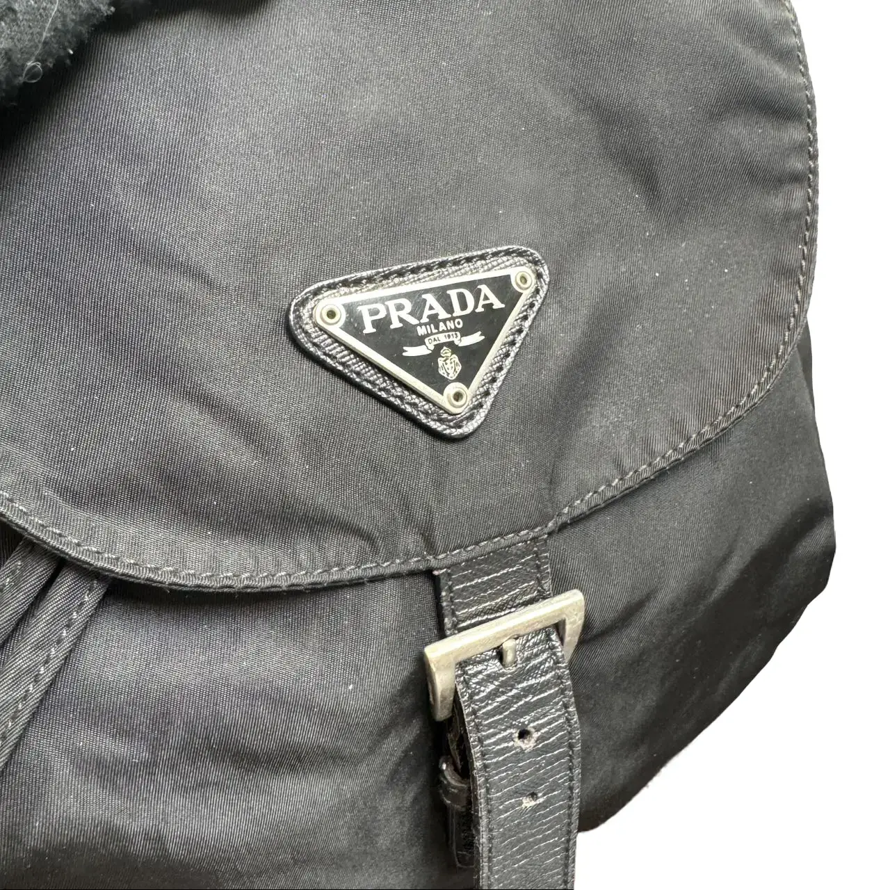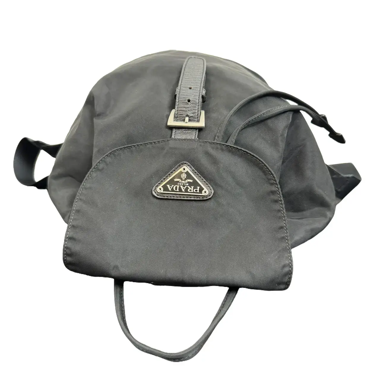 Material & Craftsmanship: Crafted from Prada's signature water-resistant nylon fabric, the bag is lightweight, durable, and wrinkle-resistant, perfect for daily use. The iconic triangular metal logo on the front is an instantly recognizable signature, adding understated luxury to every look. Hardware & Closure: The classic drawstring + buckle closure features vintage silver hardware with smooth operation and exquisite craftsmanship. The adjustable nylon shoulder straps ensure comfortable carrying for all-day use. Capacity & Practicality: The large drawstring silhouette offers generous space, easily fitting a laptop, documents, cosmetics, an umbrella, a water bottle and other daily essentials. It is lightweight and comfortable to carry, making it an ideal companion for commuting, travel and everyday use. Style & Versatility: The minimalist all-black design is timeless and elegant. It pairs perfectly with office suits, casual denim, or sporty outfits, instantly elevating your overall style. Condition: The bag is in good vintage condition with intact nylon fabric, bright and shiny hardware, and gentle signs of use. It is a perfect choice for both collection and daily wear.