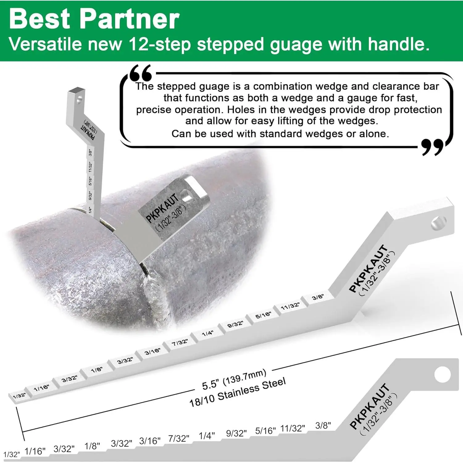 2Pcs 2130 Small Pipe Spacer Wedge Stepped Guage (3/4" x 4"), Fit for Pipe Spacing Welding, Stepped Flange Wedge with Lanyard Hole Pipefitter Tools