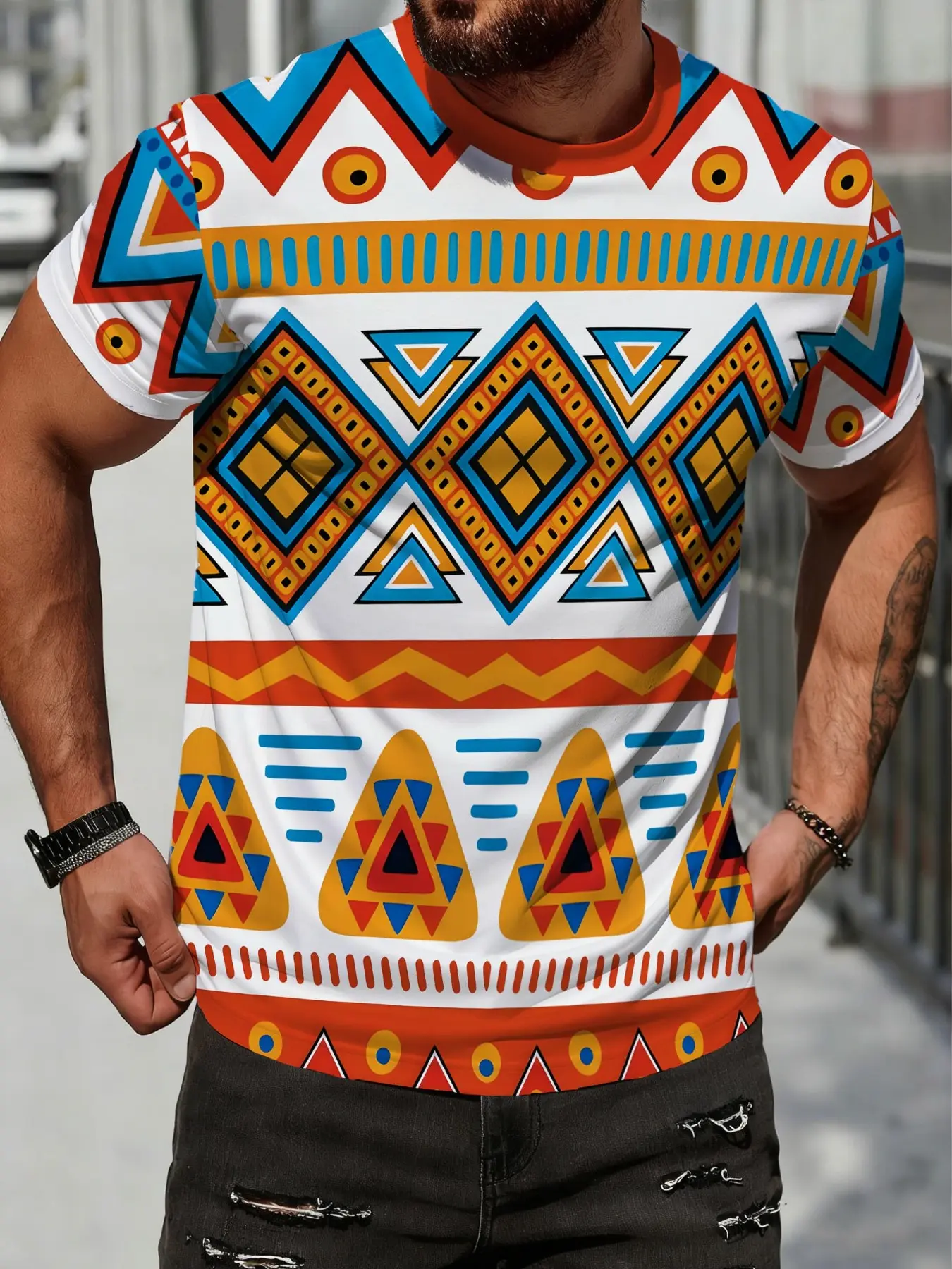 Unisex Middle Eastern Multi-Color Patchwork Print Short Sleeve T-Shirt, Summer Fashion Quick-Dry Casual Top, Ideal for Daily Wear & Outdoor Activities