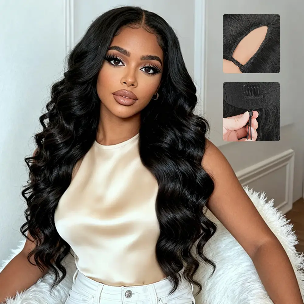 This wig is beginner-friendly, with no glue or sewing required. It includes a V shape clip-in half wig with a drawstring. Delivery time is 3-5 days after shipping. Enjoy a 30-day no reason return and exchange policy.