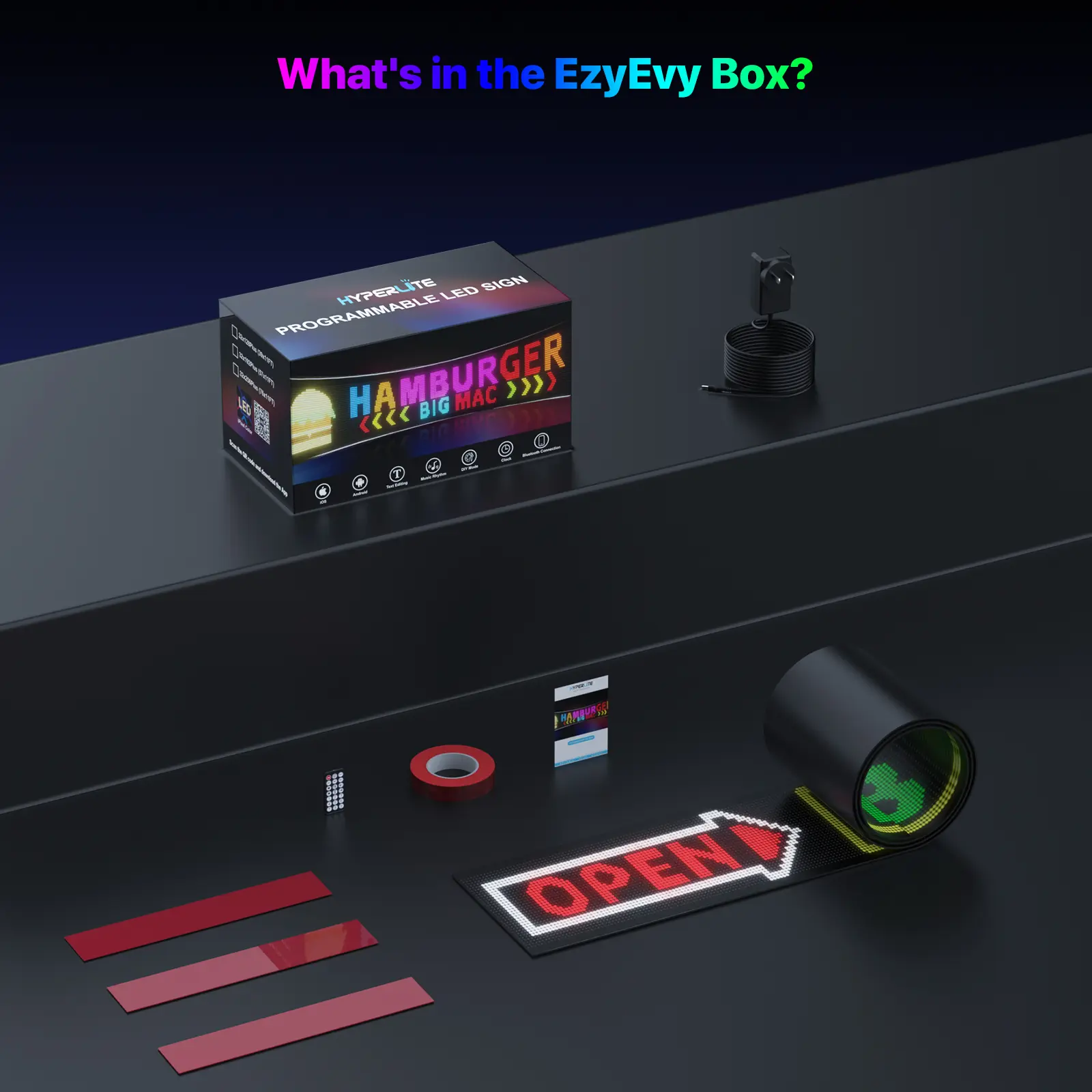 Made of flexible, lightweight PU + FPCB material with a durable drop-glue surface. The USB 5V low-power design means you can power it from any USB port – laptop, power bank, car charger, or wall adapter. No complex wiring. Touch-safe and cool to the touch, safe for all ages. HYPERLITE offers a free replacement if your sign arrives damaged.