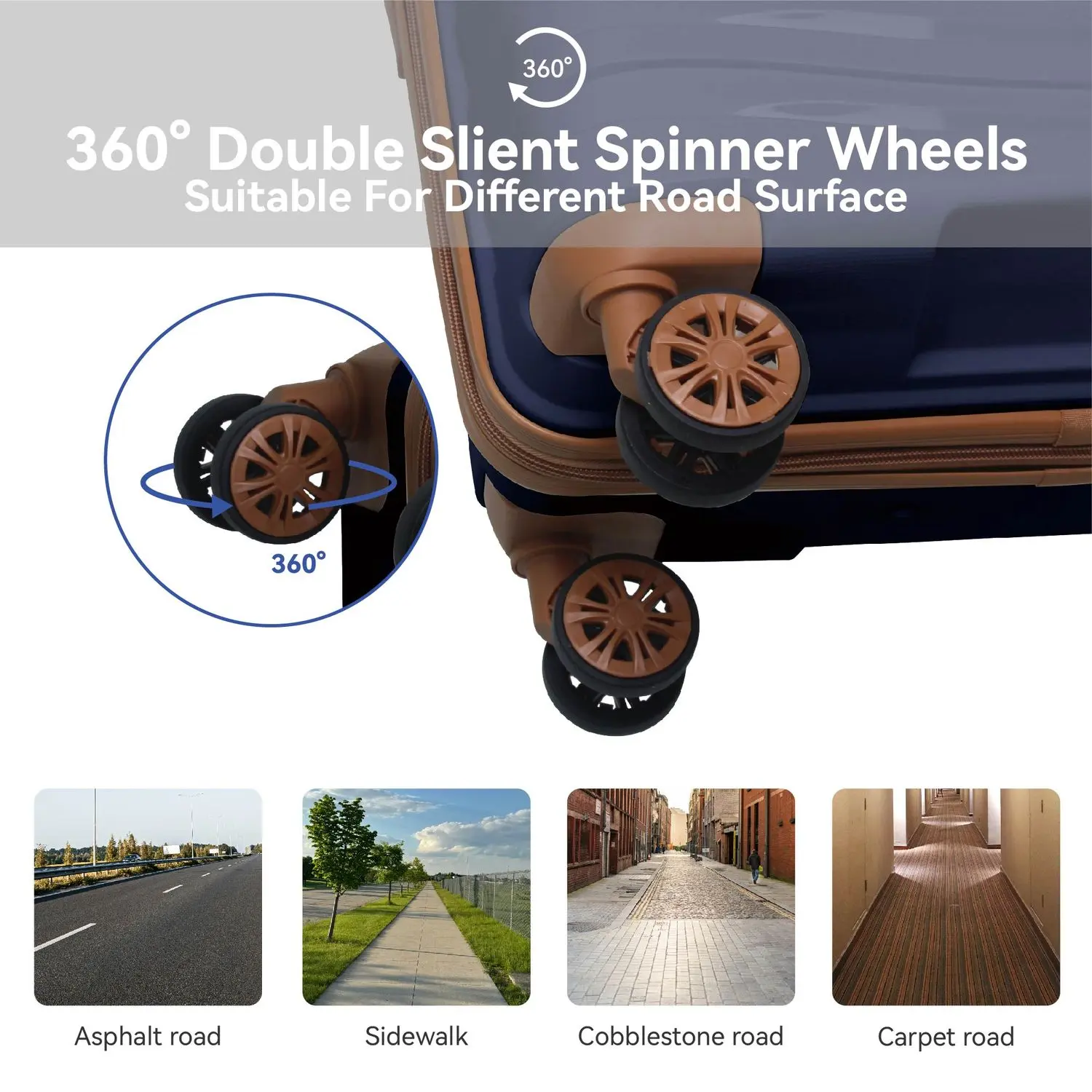 2. " Easy to Maneuver": " Equipped with four 360-degree spinner wheels and a telescopic handle, this luggage set offers excellent maneuverability in any direction, making it easy to navigate through crowded airports and busy streets."