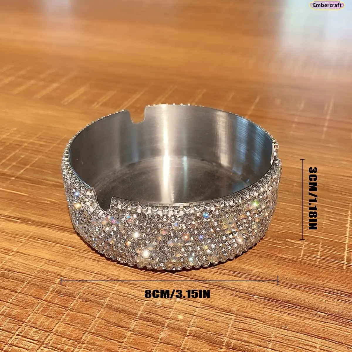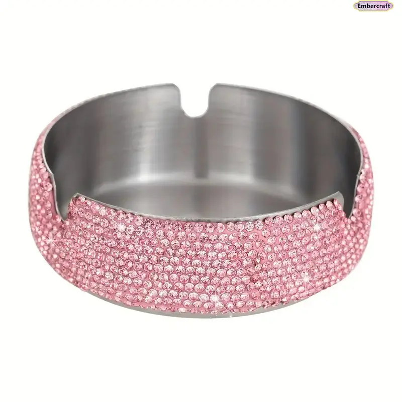 Bling Stainless Steel Ashtray with Rhinestone Design, Decorative Metal Ashtray for Home, Car, Desk and Patio, Luxury Portable Smoking Accessory