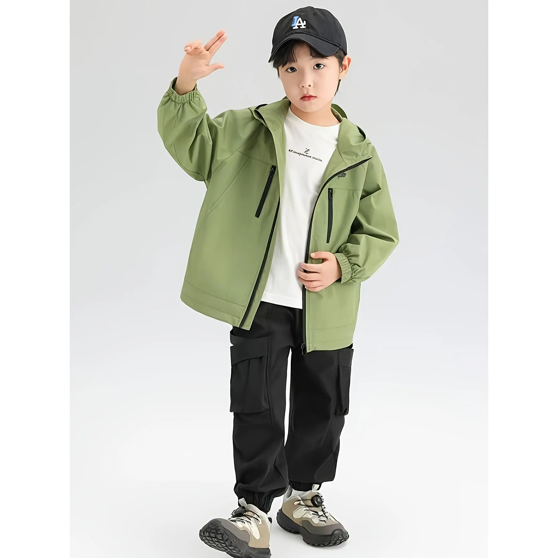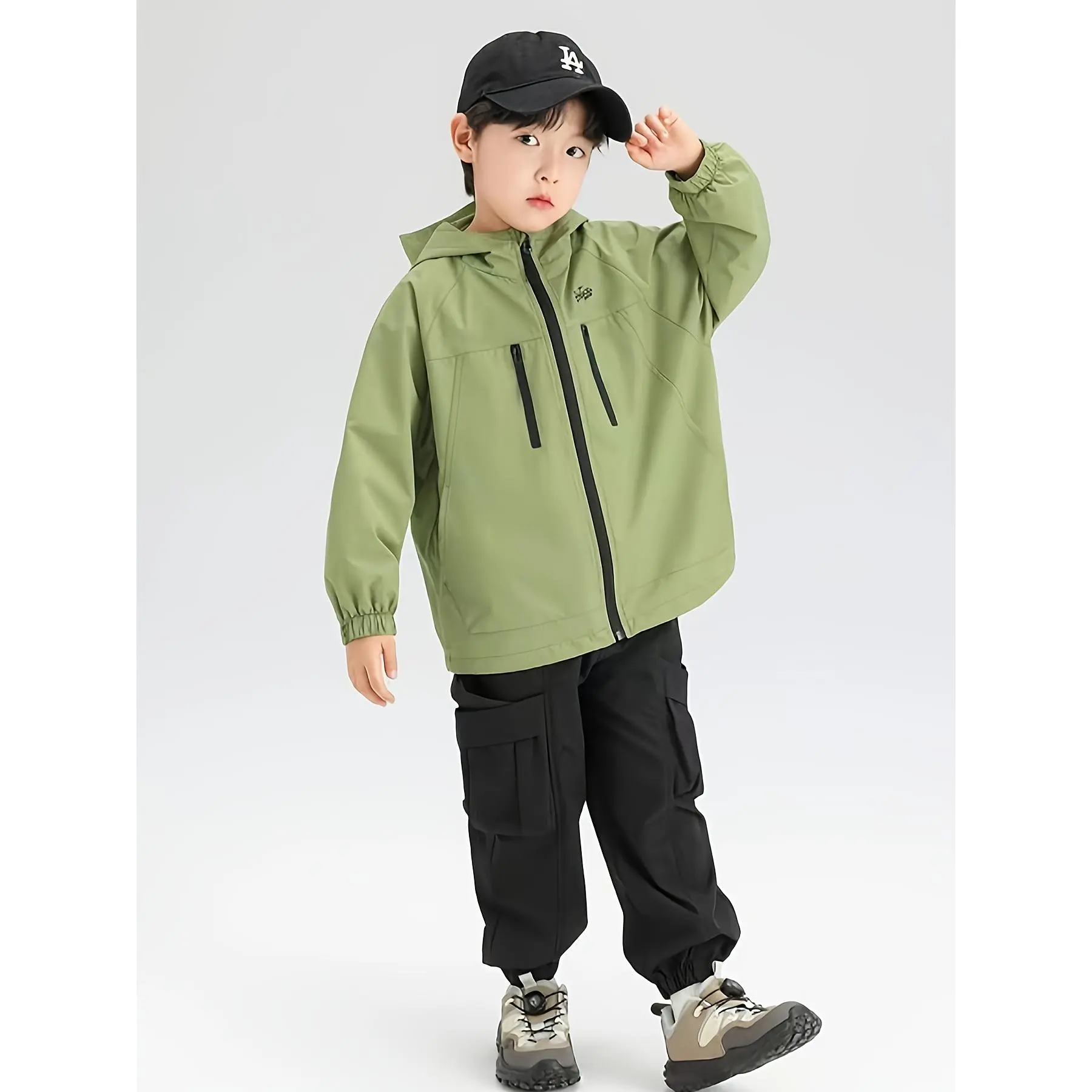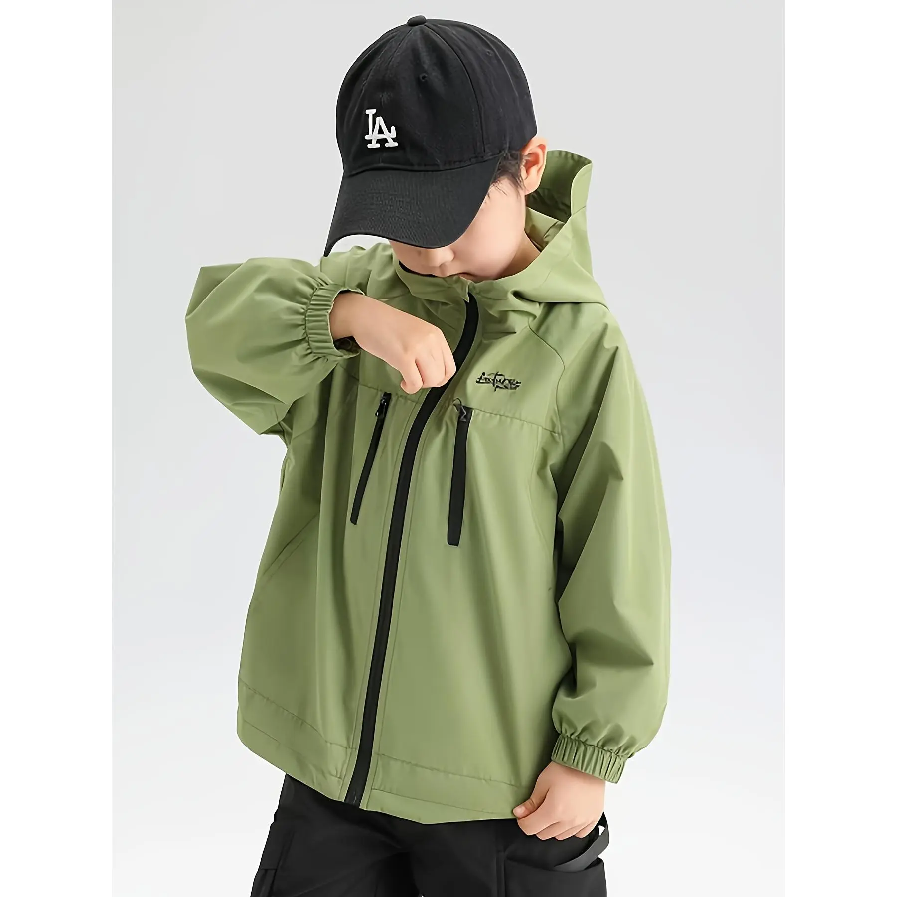 Composition: 100% PolyesterMaterial: PolyesterPattern: Solid colorSheer: NoFabric: Non-StretchCollar Style: HoodedSeason: Spring/FallOperation Instruction: Hand wash,do not dry cleanStyle: CasualApplicable Age Group: Over 3 Years OldFit Type: RegularWeaving Method: WovenApplicable People: BoysLining: Polyester Fiber (polyester)Item ID: HG3636021Origin: Anhui,China