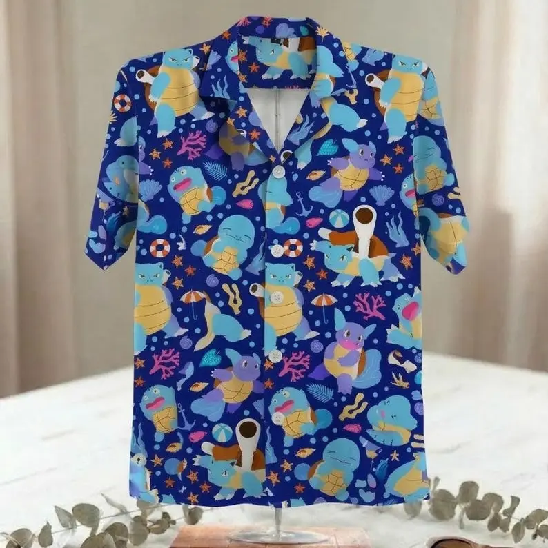SquirtleBlastoise Hawaiian Shirt Cute Tropical Button Up Summer Vacation Beach Outfit Fun Unisex Style SquirtleShirt Gifts