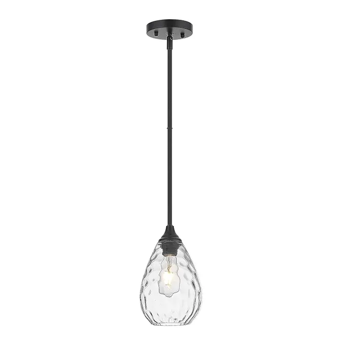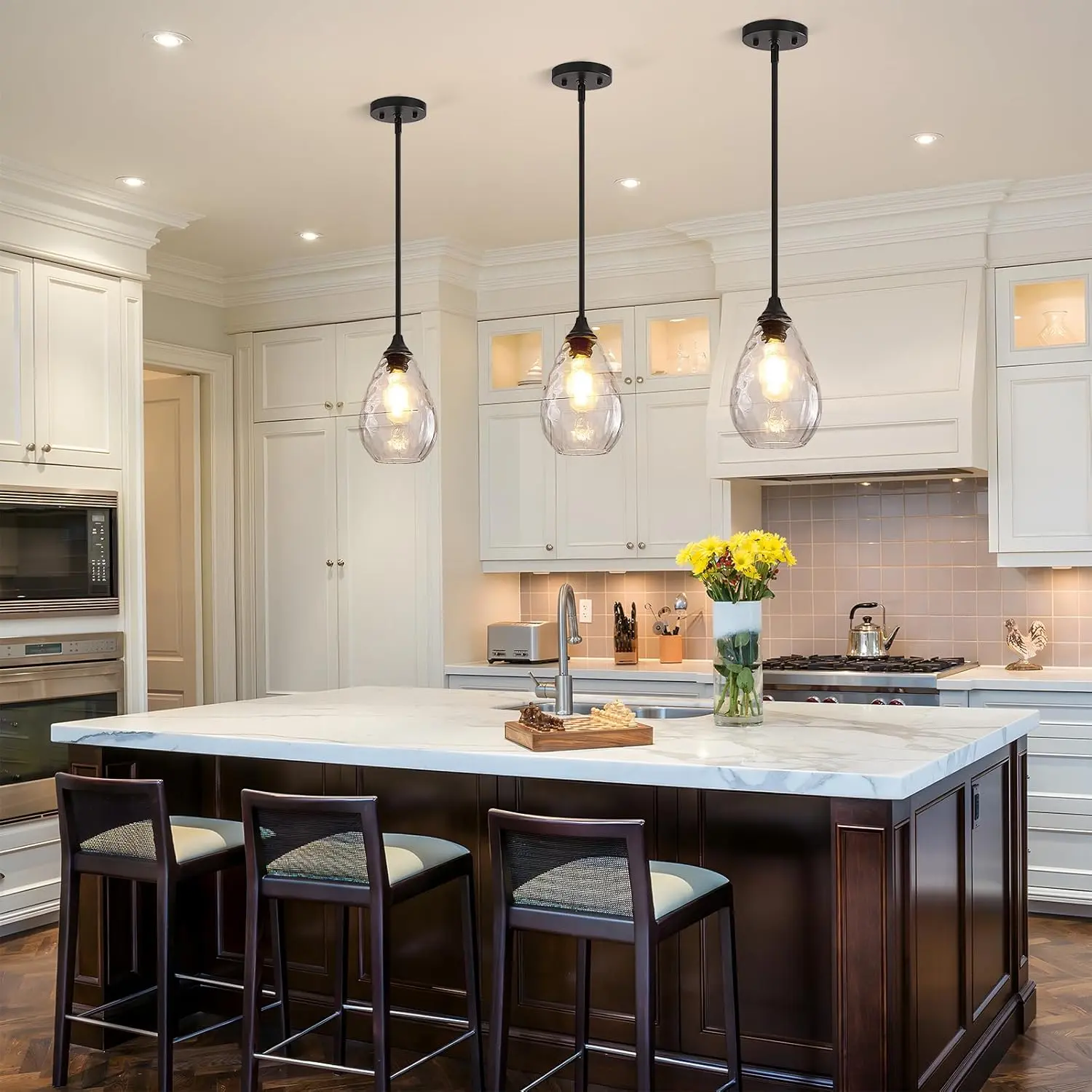 Glass Pendant Lights Kitchen Island, 1-Light Modern Black Fixtures with Hammered Glass & Rods Small Hanging Light for Kitchen Sink Dining Room Bathroom