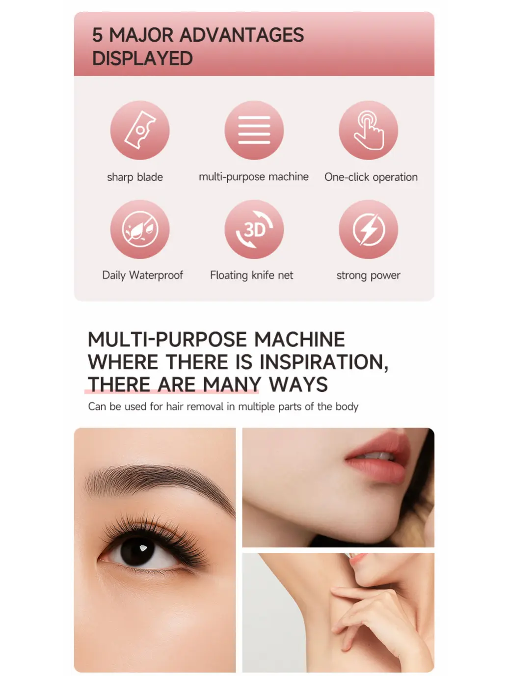 【2-in-1 Hypoallergenic Pro】Electric razors with advanced aircraft-grade ceramic blades and dual precision heads. Seamlessly switch between intimate grooming and facial detailing — no need to change equipment to carefully care for your underarms, legs, and body curves, all without any stimulation!