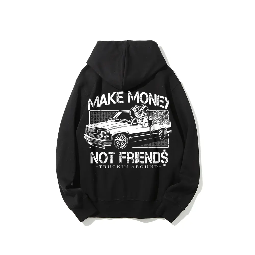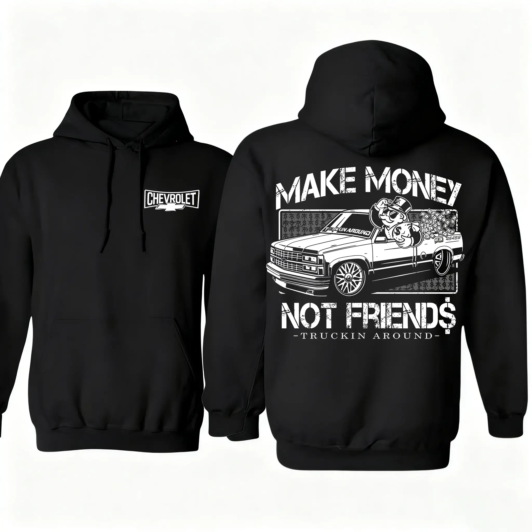 5. Chevrolet "Making Money, Not Friends" Hoodie, Unisex Custom Truck Design Hoodie, Pure Cotton Streetwear Hoodie, a fun gift for ambitious individuals.